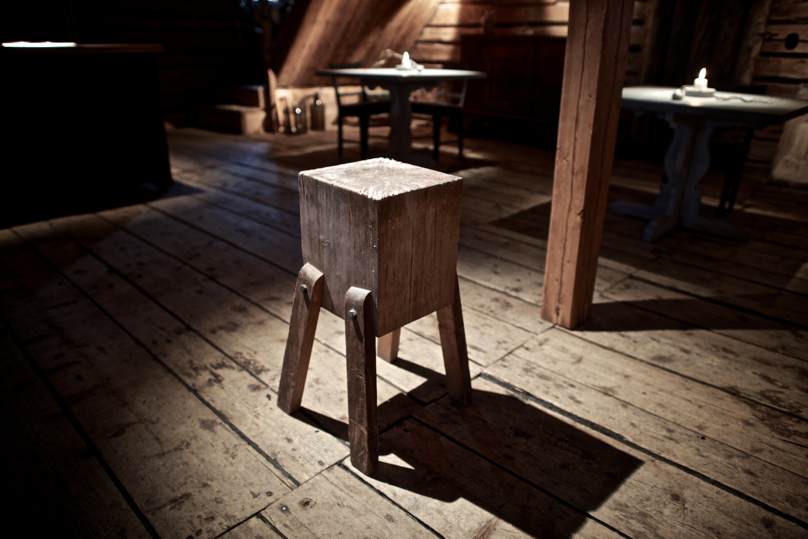 And with this, the end of the appetisers, we’re lead up some creaky wooden stairs to the main dining room above, where our table decorated in nothing more than dried garlic bulbs was waiting for us. The room is rough and rustic, sparsely decorated with tapestries, dried herbs and hanging meats. Over the speakers traditional Jämtlandian folk music is playing, with its shrill, eerie, and hypnotic sound of the fiddle seemingly transporting us back hundreds of years to a bygone era.