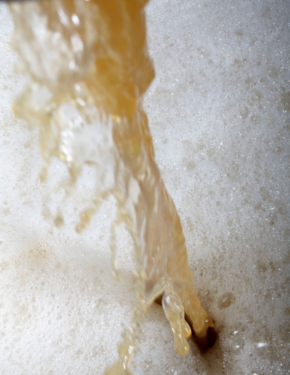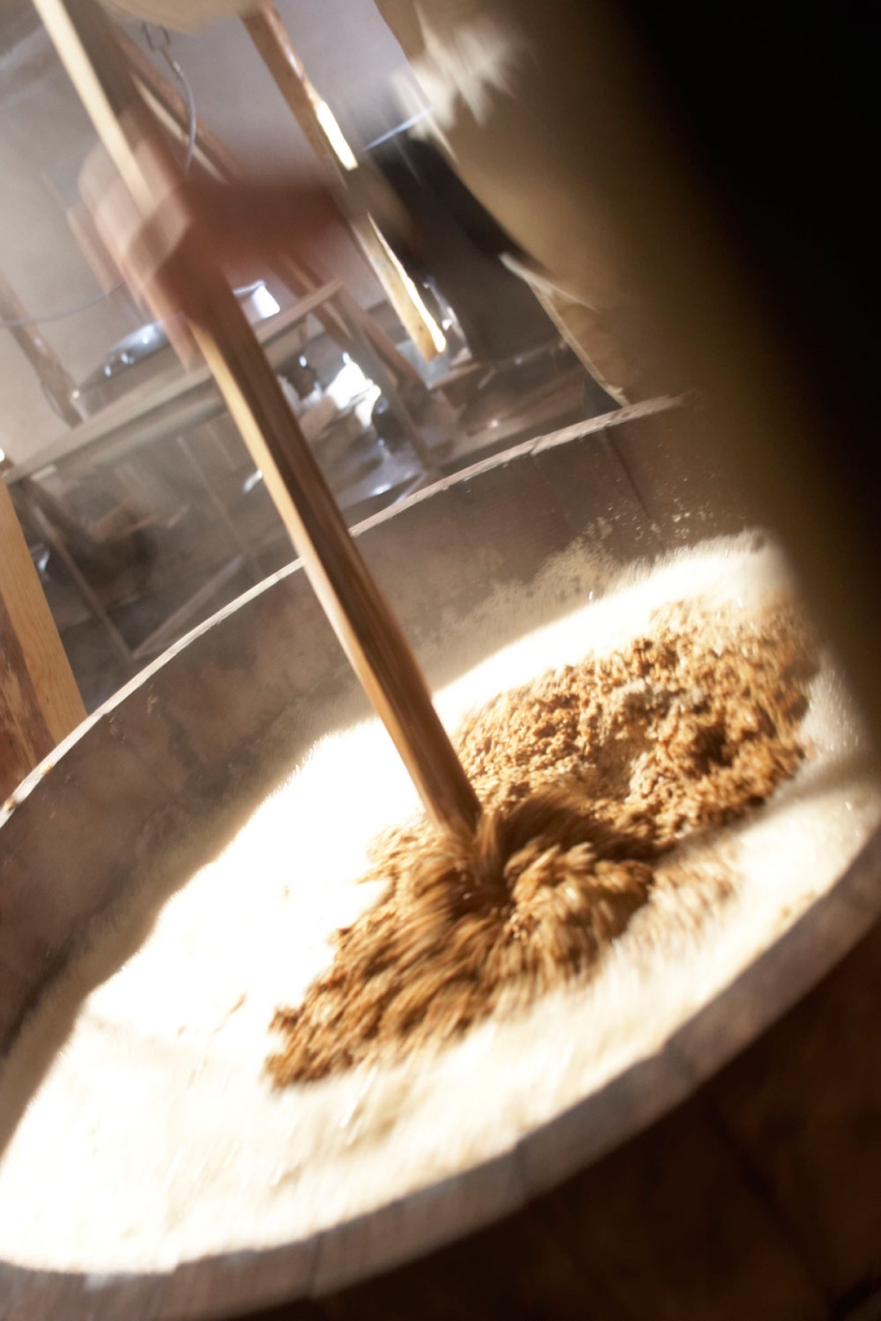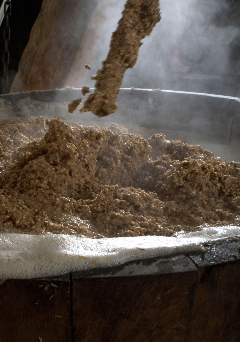 Put the ground grains in a large pot and add hot water (between 65 – 70 C, depending on the recipe). This will get the enzymes going again – and more sugar is released from the grains. The sugar from the grains will mix with hot water and form a sweet liquid called wort.