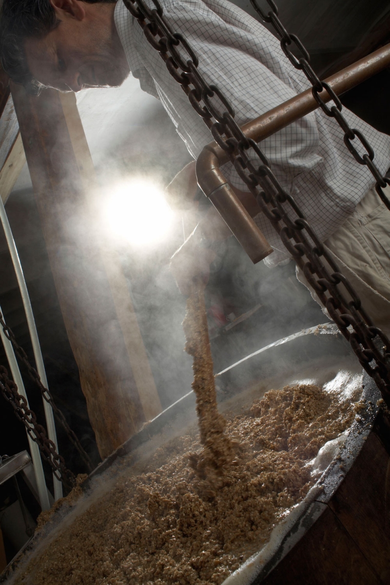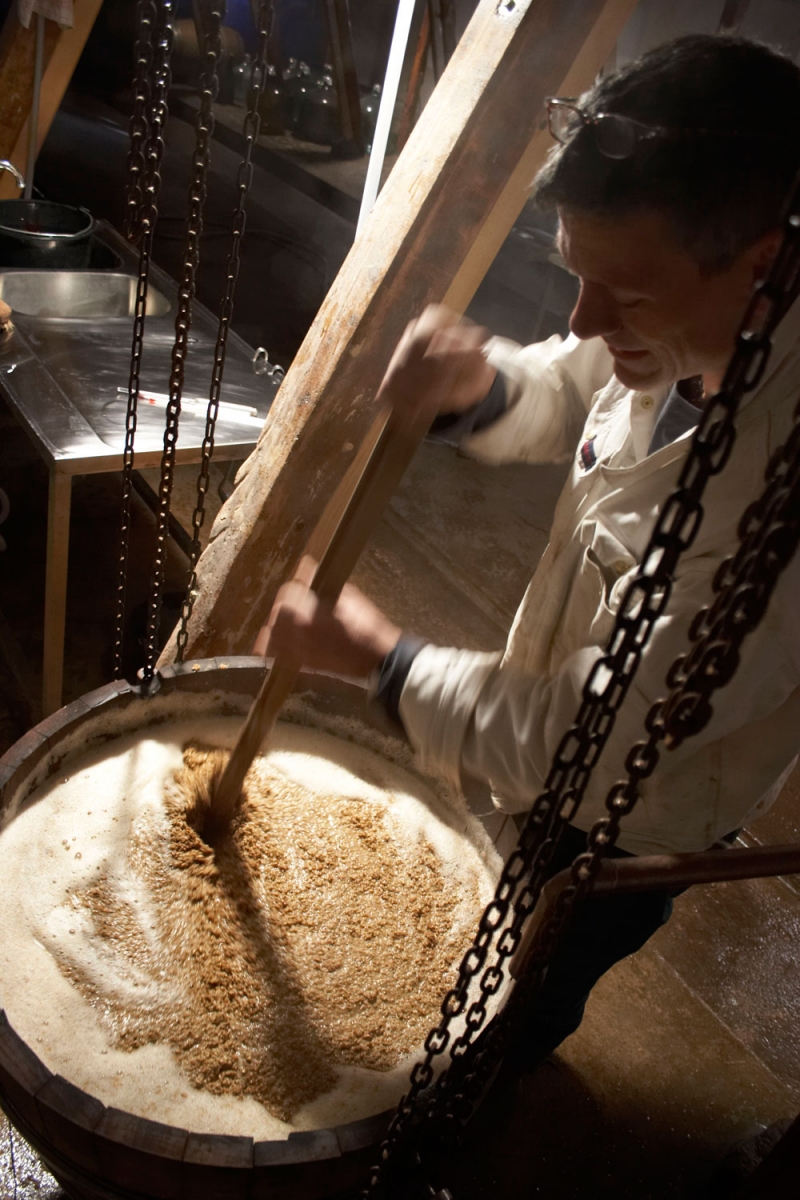 When dry, max 25-30 % of the gains can be roasted, which is when the brewer can put his or her trademark on the beer. Roast around 25% of the grain light and you get caramel malt and a maximum of 5% can be hard roasted, like coffee beans, into ‘black malt.’ When roasted the enzymes die.