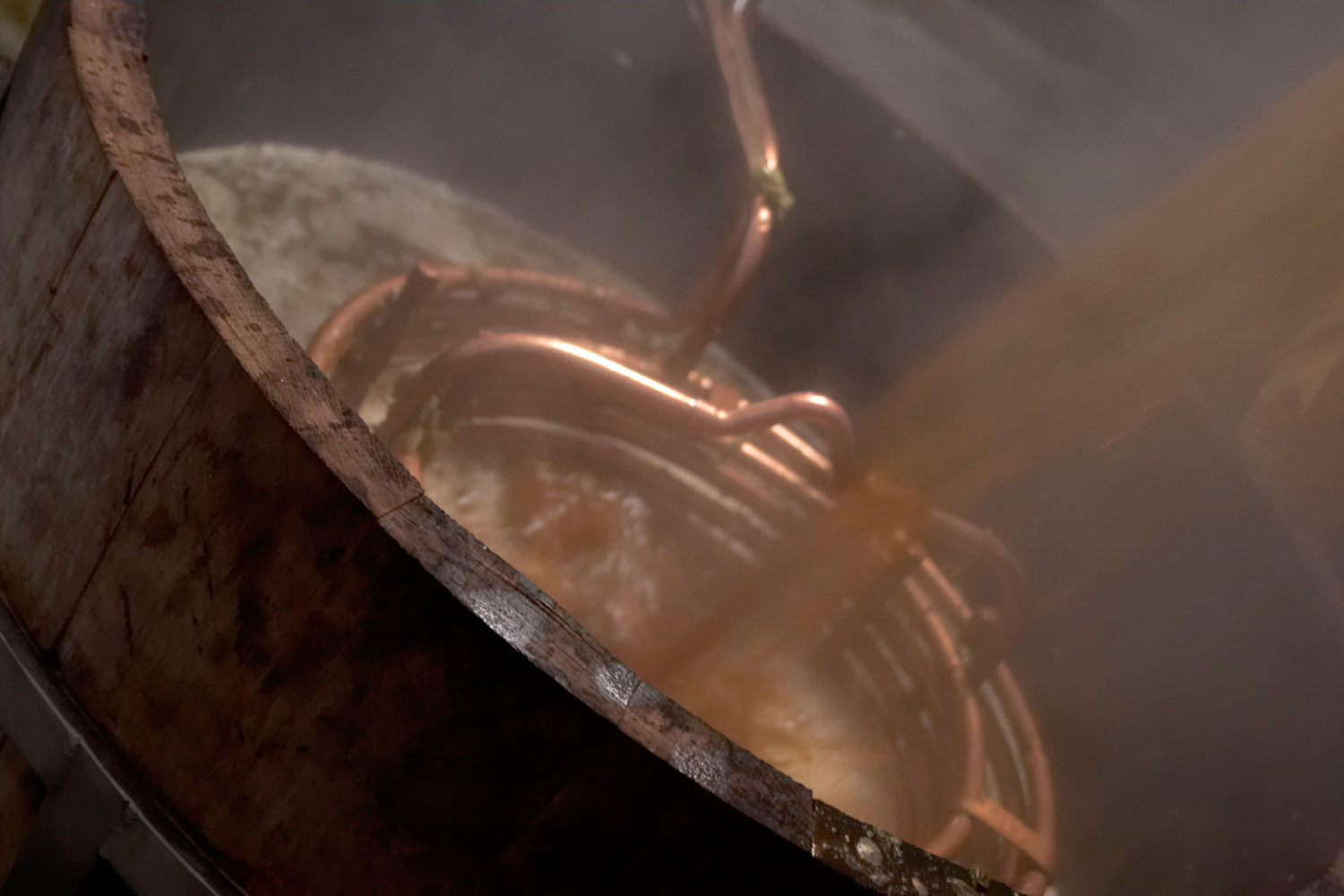 The wort is boiled for at least one hour, some recipes need more, followed by a quick cool down to prevent bacteria to breed. The liquid you now have is what will become the actual beer.