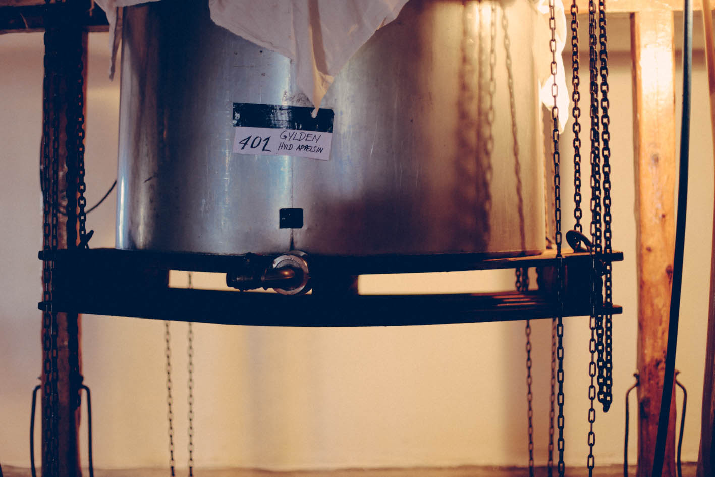In August, a good ol’ threshing machine does the job and separates the grains from their husks, which are then boiled over an open fire in large metal drums. These drums have the distinction of being manually operated by a system of pulleys. Each batch gives of approximately eight hundred 75 cl bottles. With around fifty individual brews per year, Bøgedal has an annual production of about 40,000 bottles.