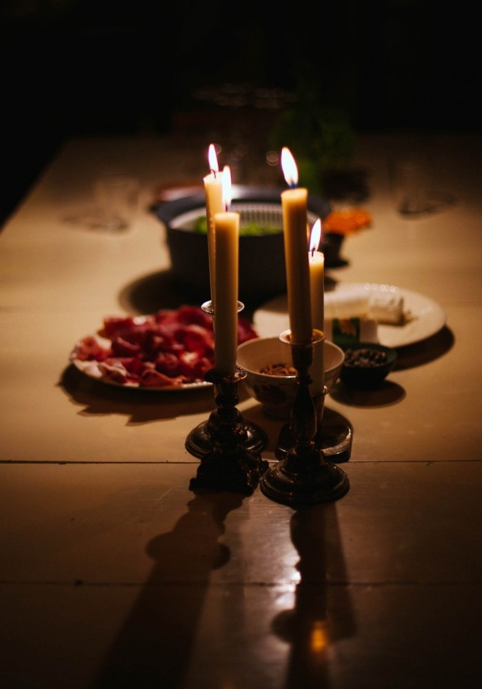 The sky clouds over as we return to the house to heat up around a large communal table, lit by an old streetlamp once used to brighten the streets of Copenhagen. The table is set with a bounty of cheese, traditional Danish meatballs – frikadeller – fresh salad, bottles of Bøgedal n°395 (the beers are not given names but, rather, numbers according to their brew batch), and tasty little sourdough breads.