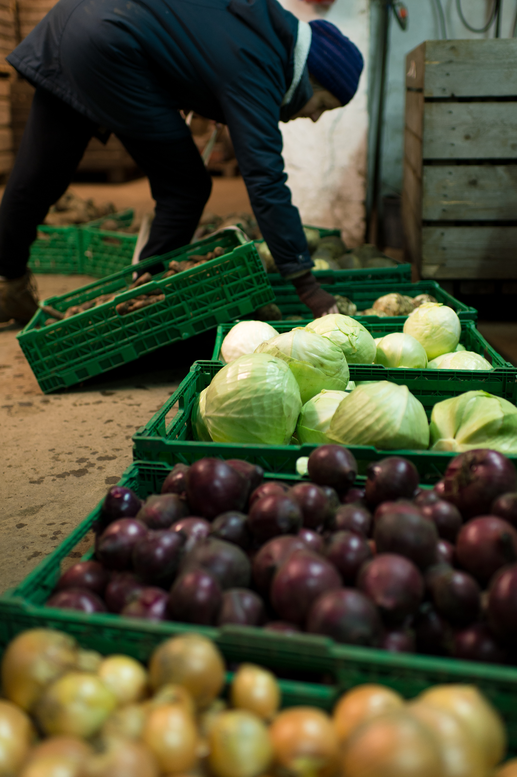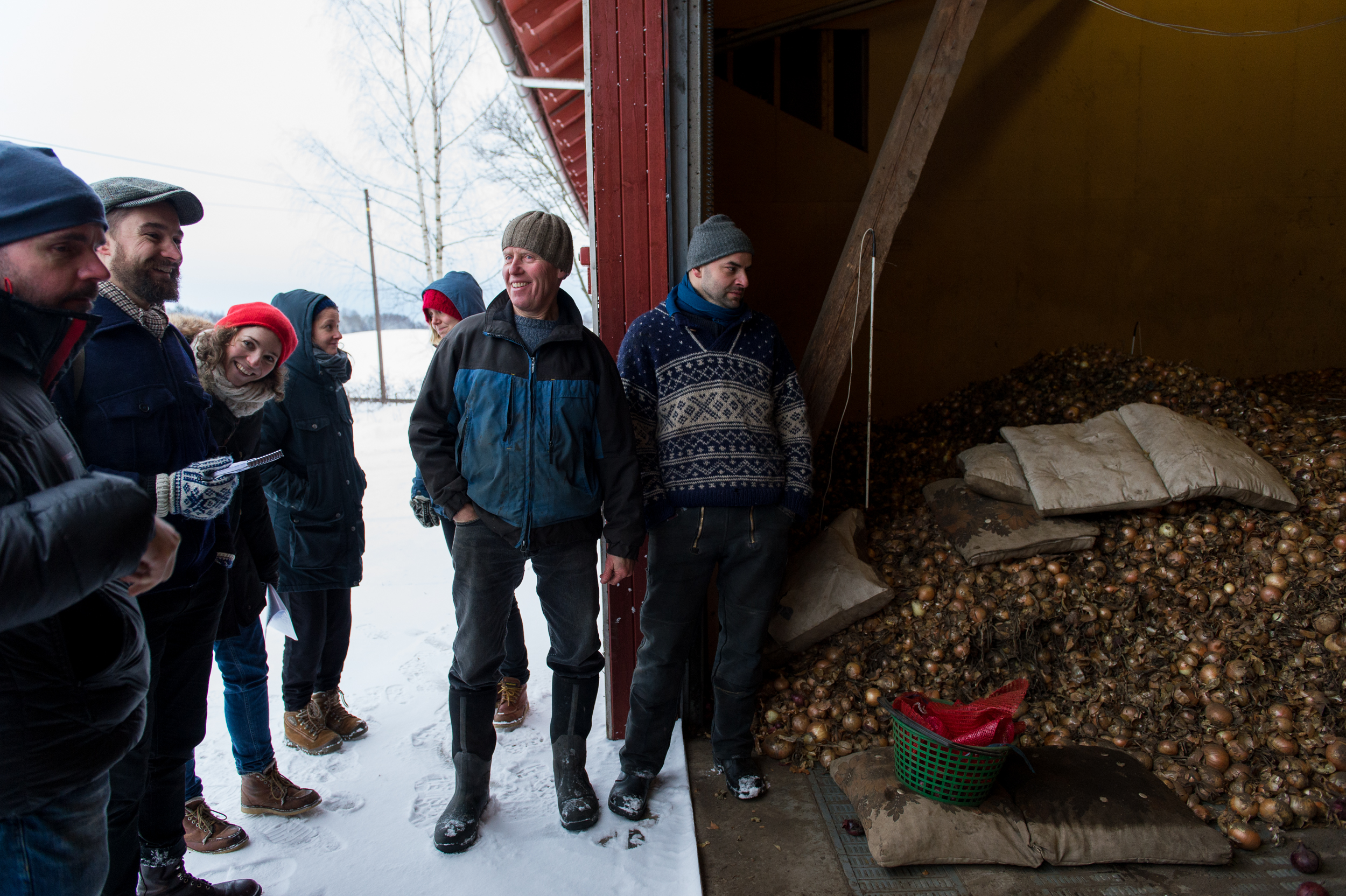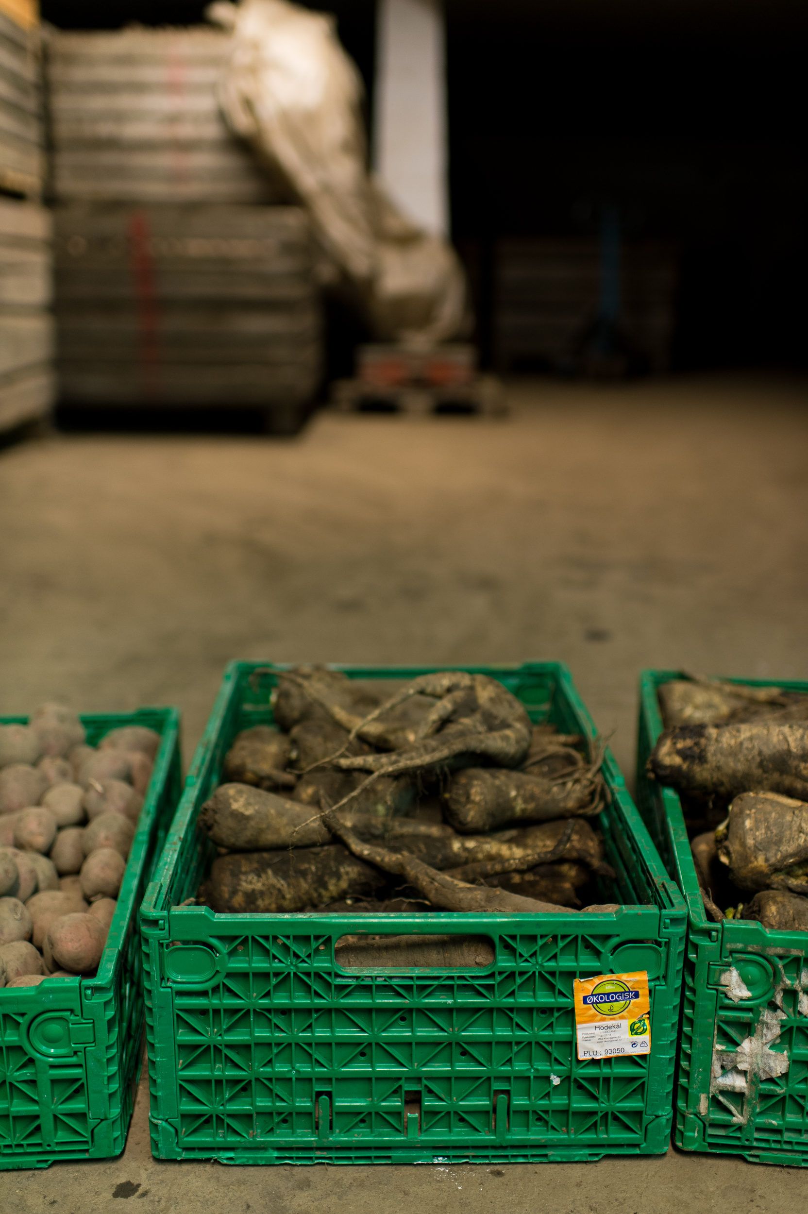 Inside the barn at Fokhol, the cows have just been milked and fed. Their fodder mainly consists of hay with some fermented grass and swede. At Fokhol, they also produce their own organic concentrate. This is a natural part of the cyclic thinking in biodynamic agriculture: The Livestock fertilises the ground, and gets back some of the produce as fodder. In addition, all demands for organic farming must be kept: No chemical fertilisers or pesticides, no artificial or soya-based concentrate. The root cellar is in an adjoining barn. All Fokhol’s root vegetables are kept in store here for the winter – large crates are filled to the brim with swede, carrot, parsnip, beet, potatoes, cabbage and pumpkin. According to farmer Rune Myrseth, the right temperature requires good planning in advance.