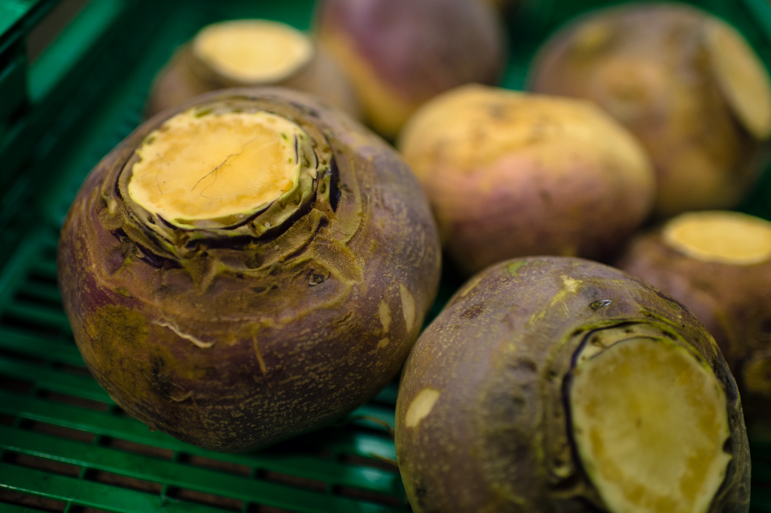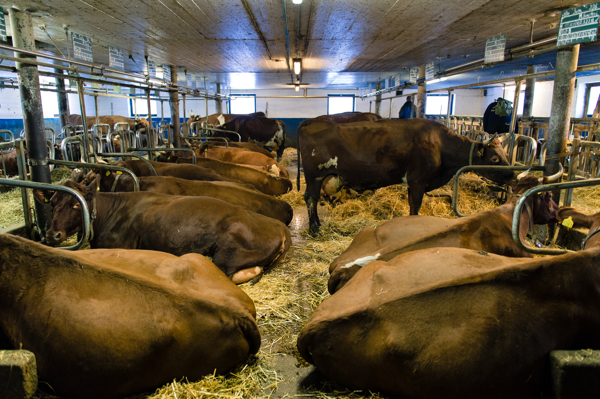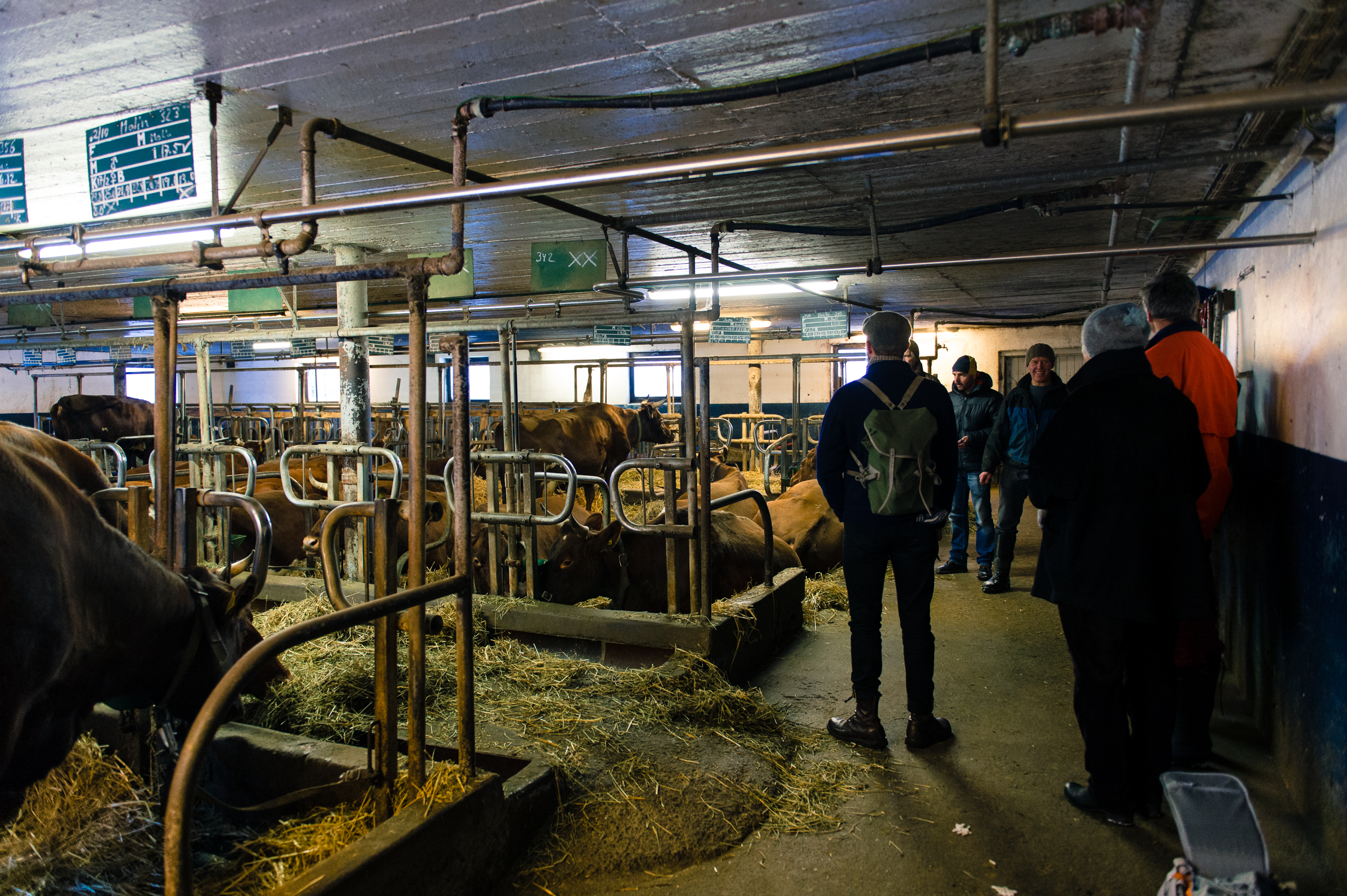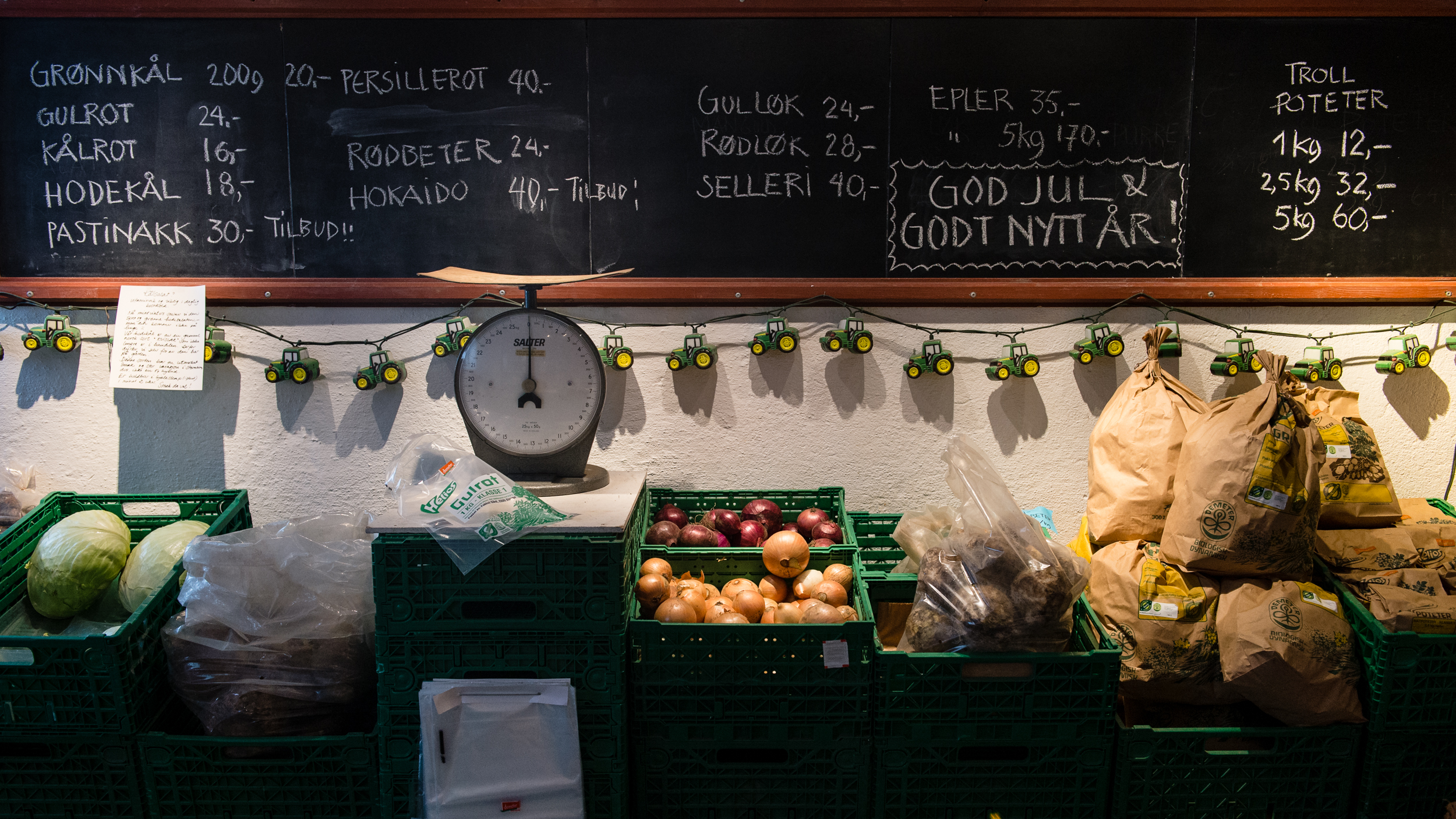 Inside the barn at Fokhol, the cows have just been milked and fed. Their fodder mainly consists of hay with some fermented grass and swede. At Fokhol, they also produce their own organic concentrate. This is a natural part of the cyclic thinking in biodynamic agriculture: The Livestock fertilises the ground, and gets back some of the produce as fodder. In addition, all demands for organic farming must be kept: No chemical fertilisers or pesticides, no artificial or soya-based concentrate. The root cellar is in an adjoining barn. All Fokhol’s root vegetables are kept in store here for the winter – large crates are filled to the brim with swede, carrot, parsnip, beet, potatoes, cabbage and pumpkin. According to farmer Rune Myrseth, the right temperature requires good planning in advance.