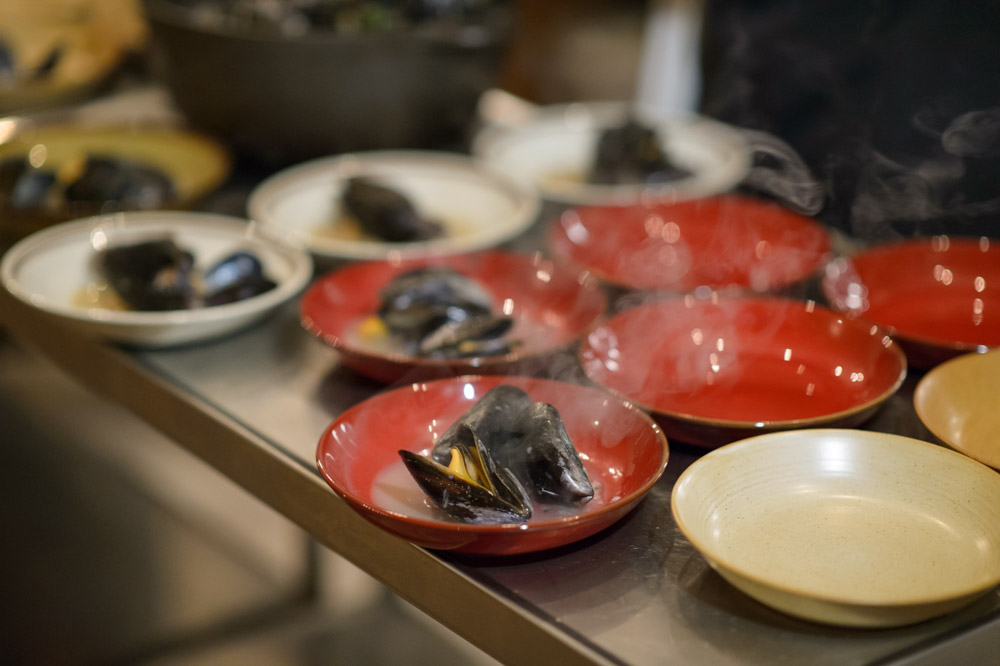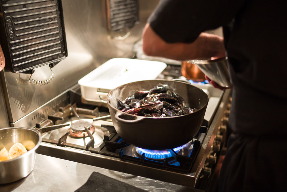 Mussels with almonds, pork cracklings and pale ale – Bøgedal Hvede