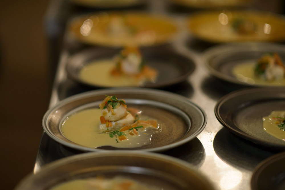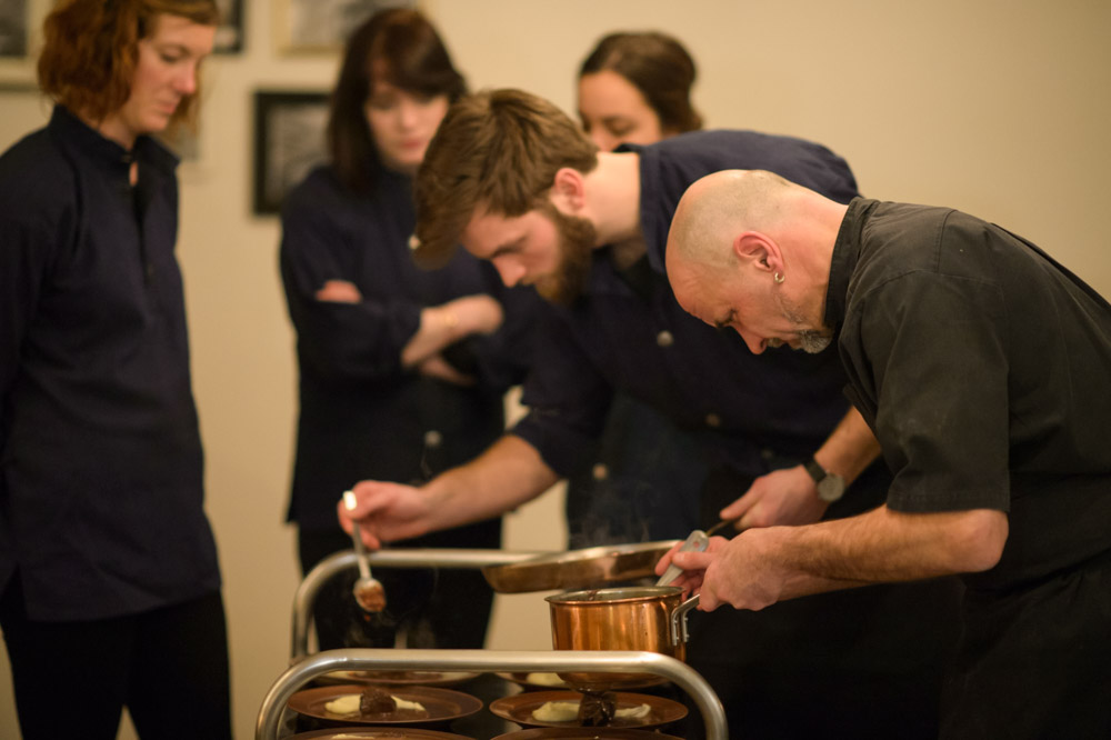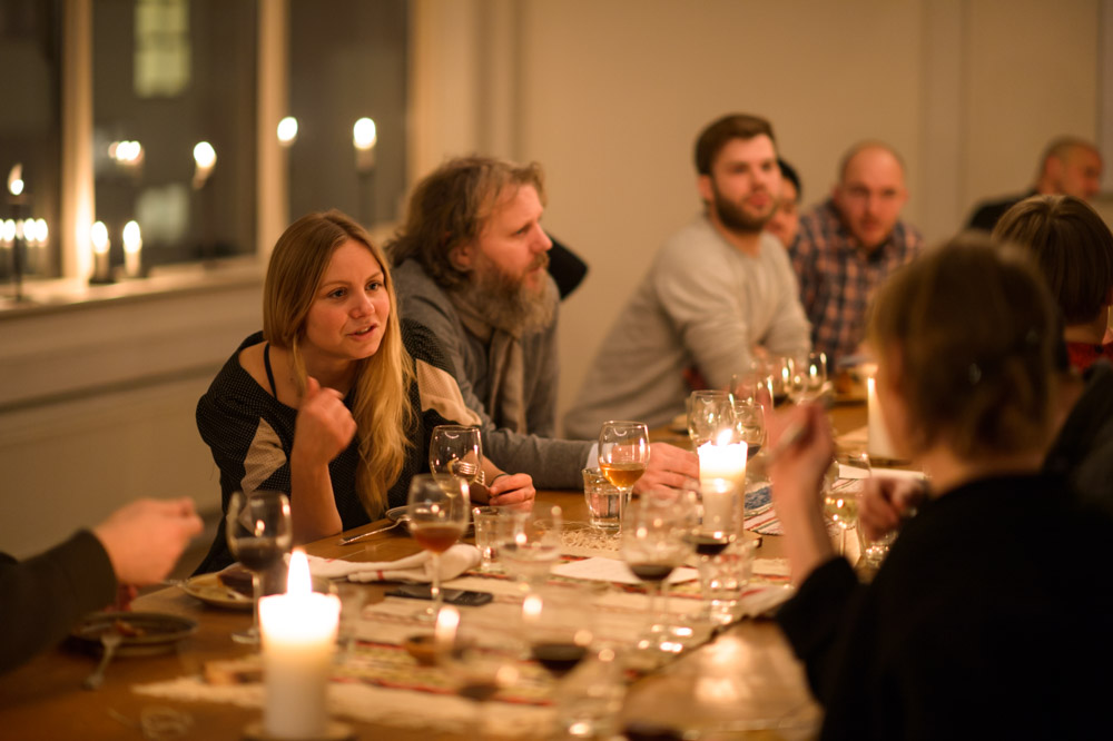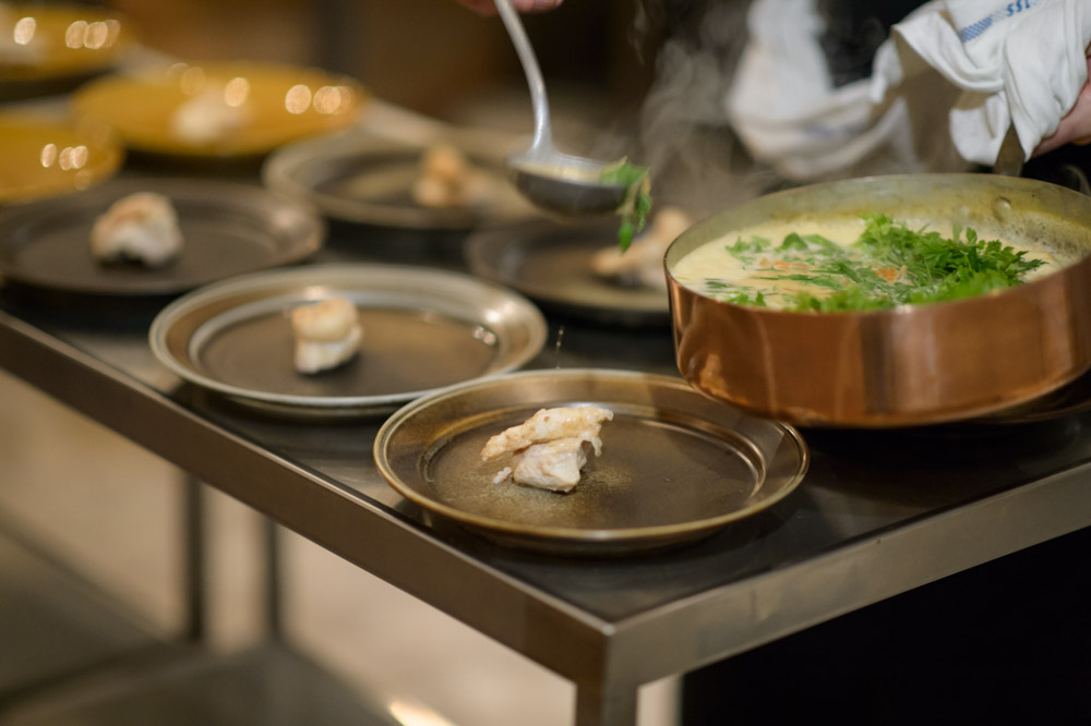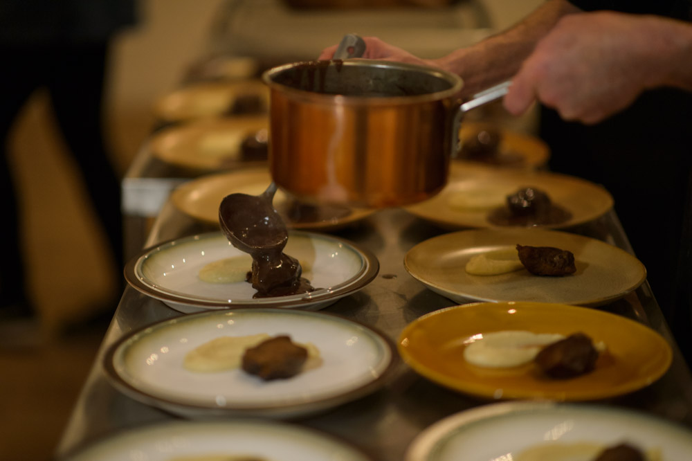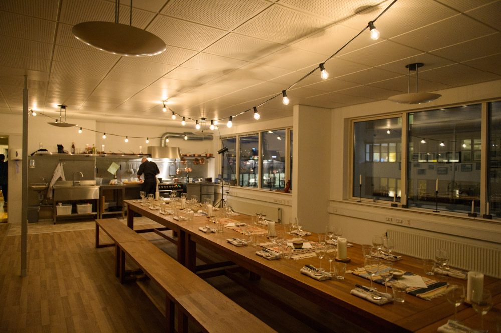 Having all tasted our way through these extraordinary potions, we drifted over to the dining hall situated only a short wintery walk away, above a local slaughterhouse. Here we we’re met by Thomas Randsøe, our chef for the evening, and the wonderful Gitte Holmboe of Bøgedal Bryghus. She had brought some of their most characteristic brews to pair with Thomas’ menu, a superb representation of what the harsh end of the winter season had to offer: