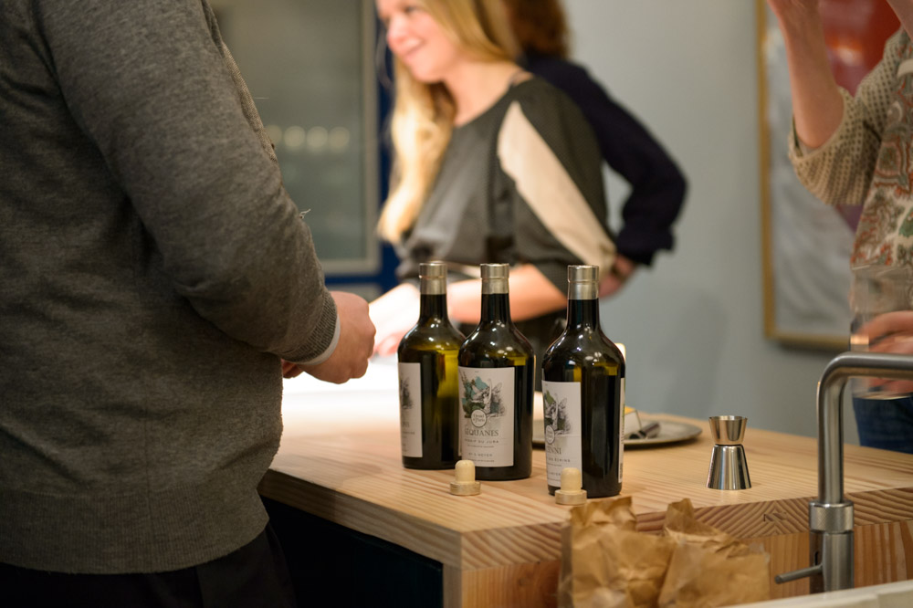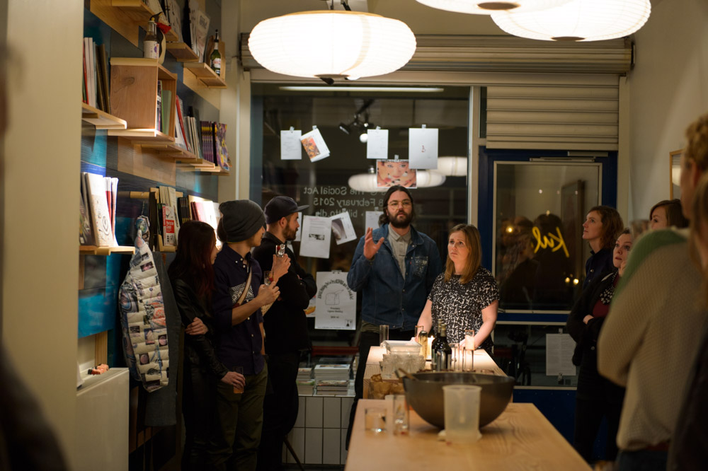 First stop was Nibble Shop, a space created by Bo Lindegaard and Lasse Askov of I’M A KOMBO. The shop is filled with publications and magazines on the subject of food and drink, but also a space where you can really take the time to taste some things and flip through a book or two. This evening we were also greeted by the friendly face of Anne Maurseth from Oslo cocktail bar No. 19, with a bowl of licorice aquavit punch to get the conversation started.