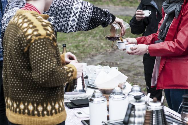After a walk around the island, we gathered by the main house on the island, a former grenade factory where women who had had relationships with German soldiers during the Second World War were sent to work. Outside, we were served another special coffee brewed on the Chemex by the Tim Wendelboe team, this time from their own lot in Finca Tamana in Colombia, a cooperative they have been working with to help improve their coffee production processes. Accompanied by some warming blankets and glasses of crisp Crémant sparkling wine, it was an excellent opportunity to get to know the other guests.