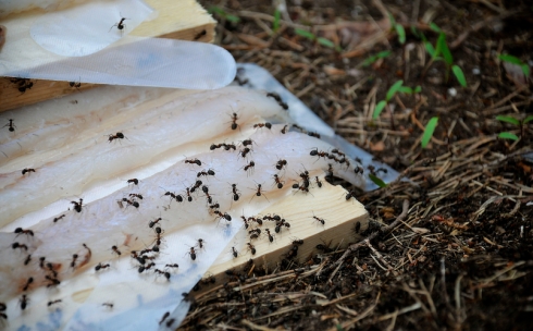 Next up was perhaps the strangest and most interesting course of the evening – a slip sole ceviche prepared with the help of some ants from a nearby ant-hill. The ants secrete formic acid, which ‘cooks’ the fish the same way as citrus juice does in a traditional ceviche. It gave the fish a slight umami taste and was accompanied by an aromatic French apple cider – Mayley Cidre Ancestrale 2012.