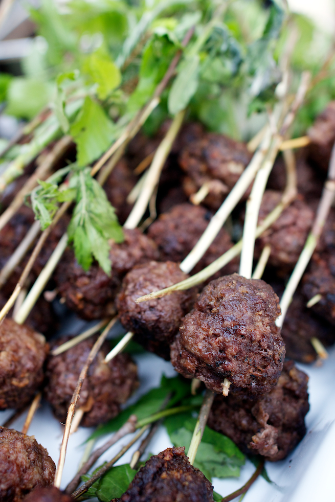 On the grill were elk sausages and meatballs, the latter having been rustically skewered onto twigs. Roast carrots and parsnips and fresh break completed the outdoor feast.