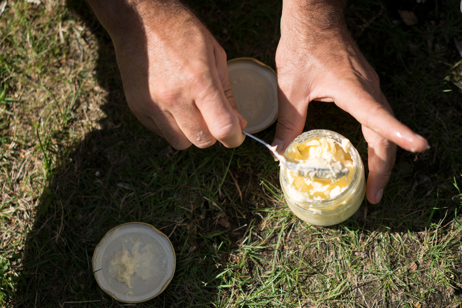 She uses the whey, a by-product from the cheese production to make a sourdough bread called mysebrod. The whey acts as a leavener agent and brings a touch of acidity to the bread. The smell of straight-out-of-the-oven cinnamon rolls is pretty hard to resist to, she bakes them through the day and serves them still hot with a cup of coffee to the curious visitors and hungry campers.