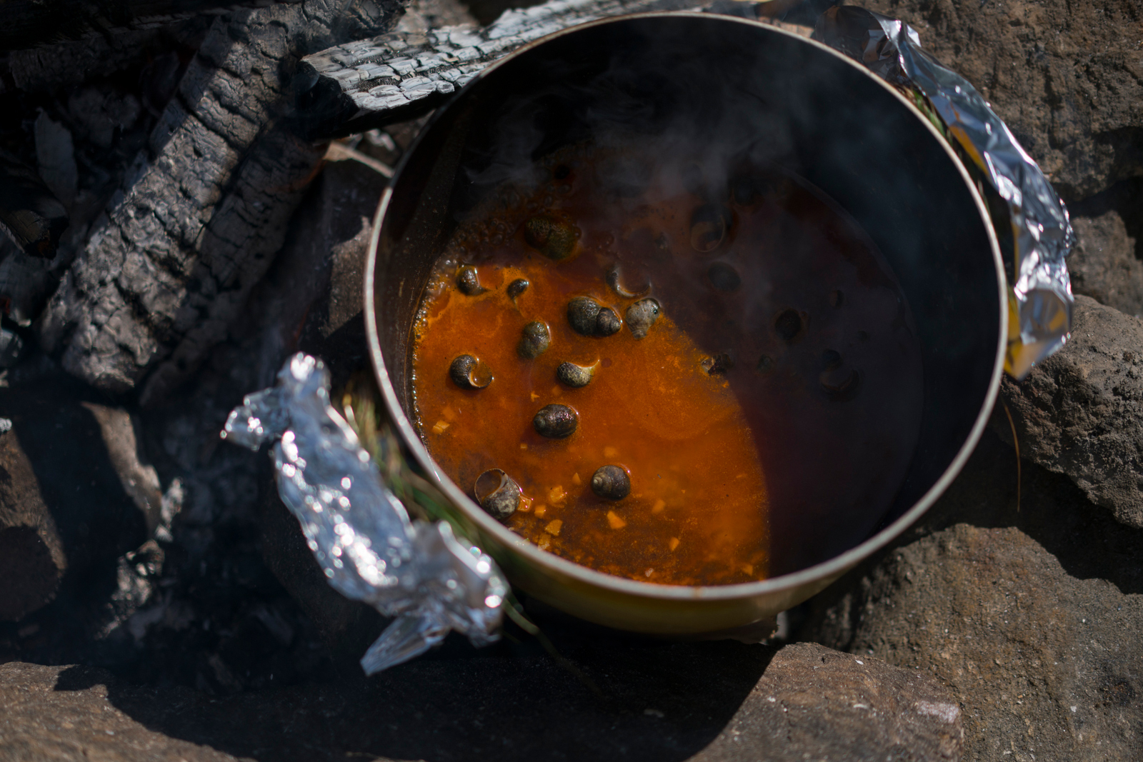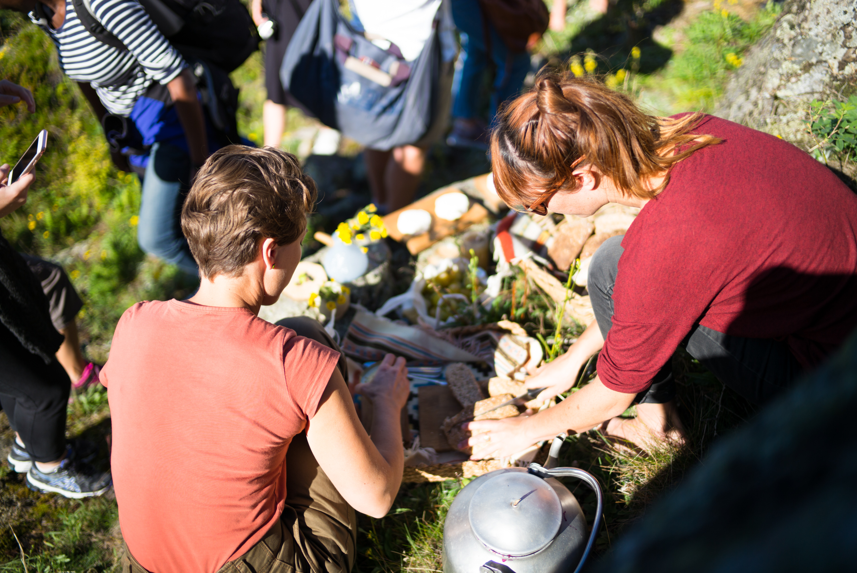 We boiled water in a giant teapot over the fire and tossed in a handful of wild strawberry leaves, some of the berries we found and a little bit of honey. The strawberry leaves are said to restore your energy after long hikes and they are full of antioxydants.