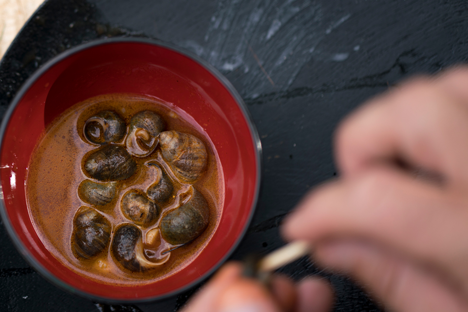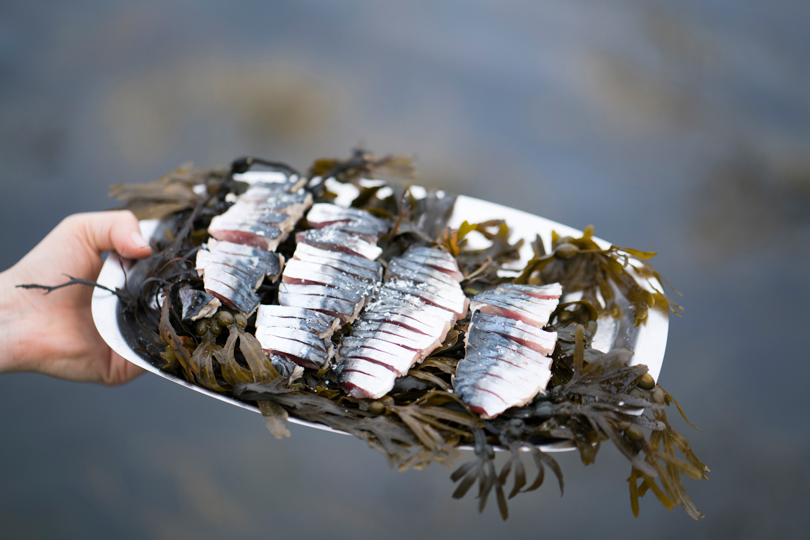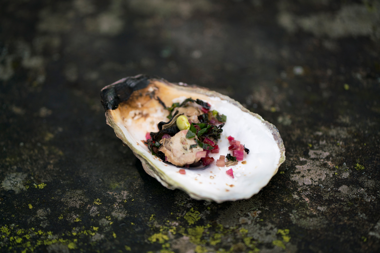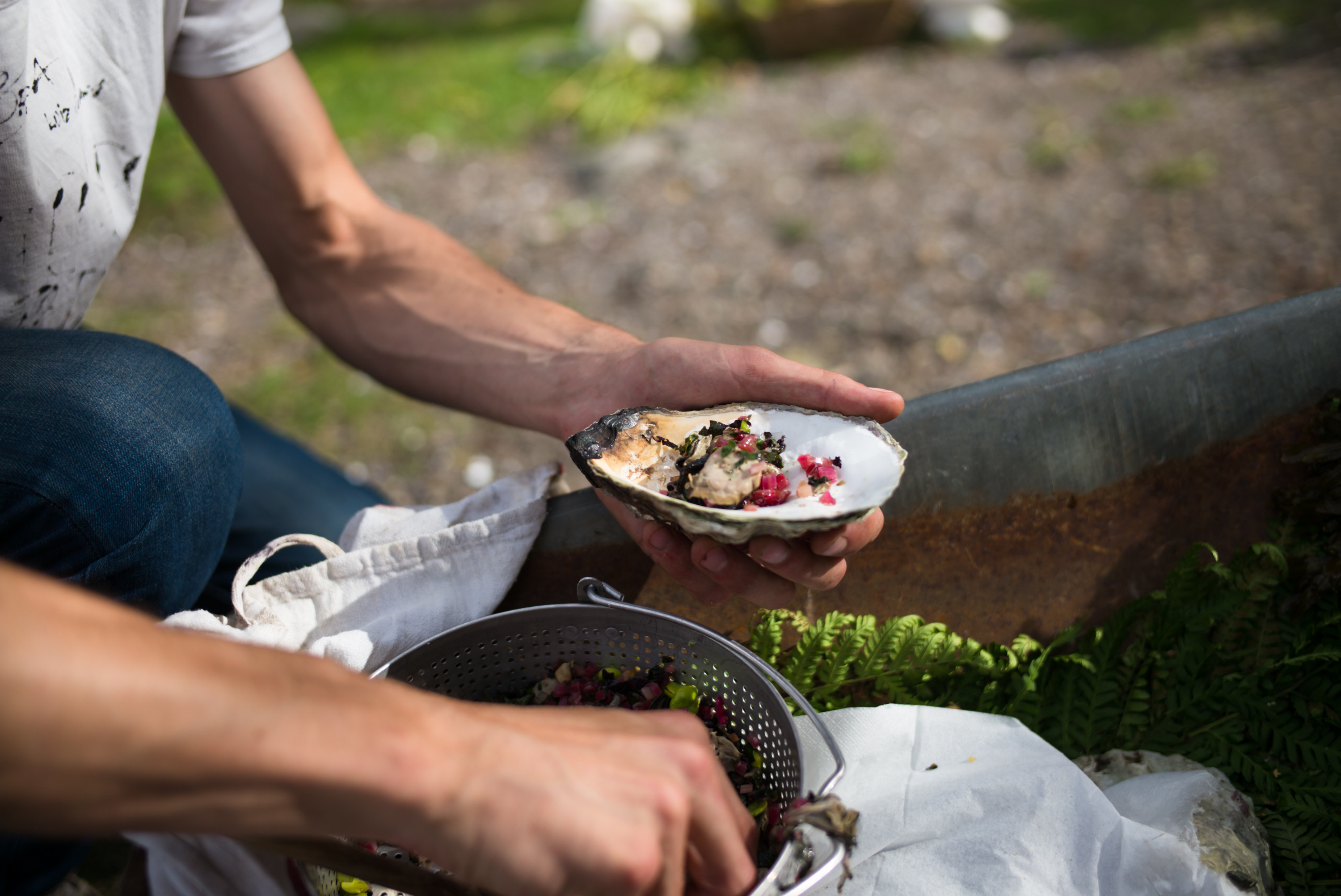 The waters are rather cold even at this time of the year but our chef Magnus is not the kind of guy who gives up so easily. With the help of Sasha, he dives and brings back oysters, mussels, sea snails and a beautiful, plump mackerel. The Pacific oysters are not an endemic norwegian specie, they have grown in Europe over the last decades and have happened to spread accross the Oslo fjord. Since there is no effective method to harvest them in the wild, they tend to proliferate at a high speed and transform their new environment. Therefore, the best way to deal with them is by going picking and eating as many as possible. They are deep and curved, show a wavy shell and can grow up to 30cm, hard to miss them under the sea!