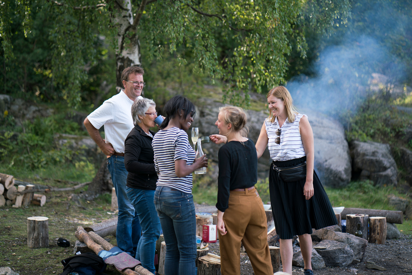 Now is the time to sharpen our knives, brush every mushrooms and open the oysters. Let’s sit on a log, on the grass or on that swing hanging from a tree and do what we do best: tell stories, make dinner and watch those last shafts of sunlight fade on the nordic waters. We raise our cups to the bountiful island of Håøya, to the Kashmir goats and to Helge and family who take such good care of it.