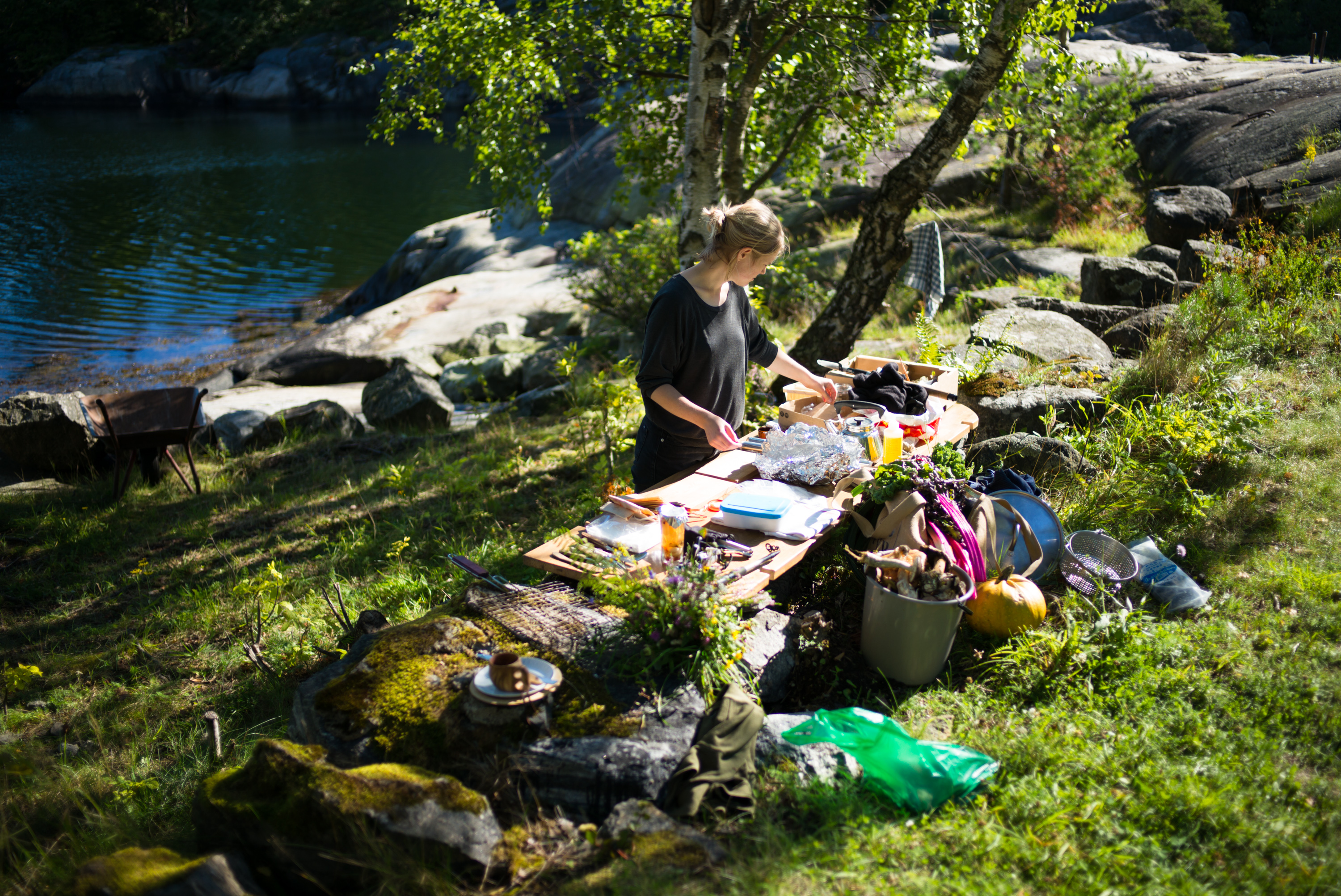 The end of august is the time where blueberries and mushroom meet in the forest. We are told that there is a blueberry heaven in the southern part of the island and decide to go for a foraging walk. Stained fingers and dirty nails, the harvest is good: bags full of blueberry, tyttebaer, juniper berries and piggsopp, steinsopp and trumpeter kantarell.