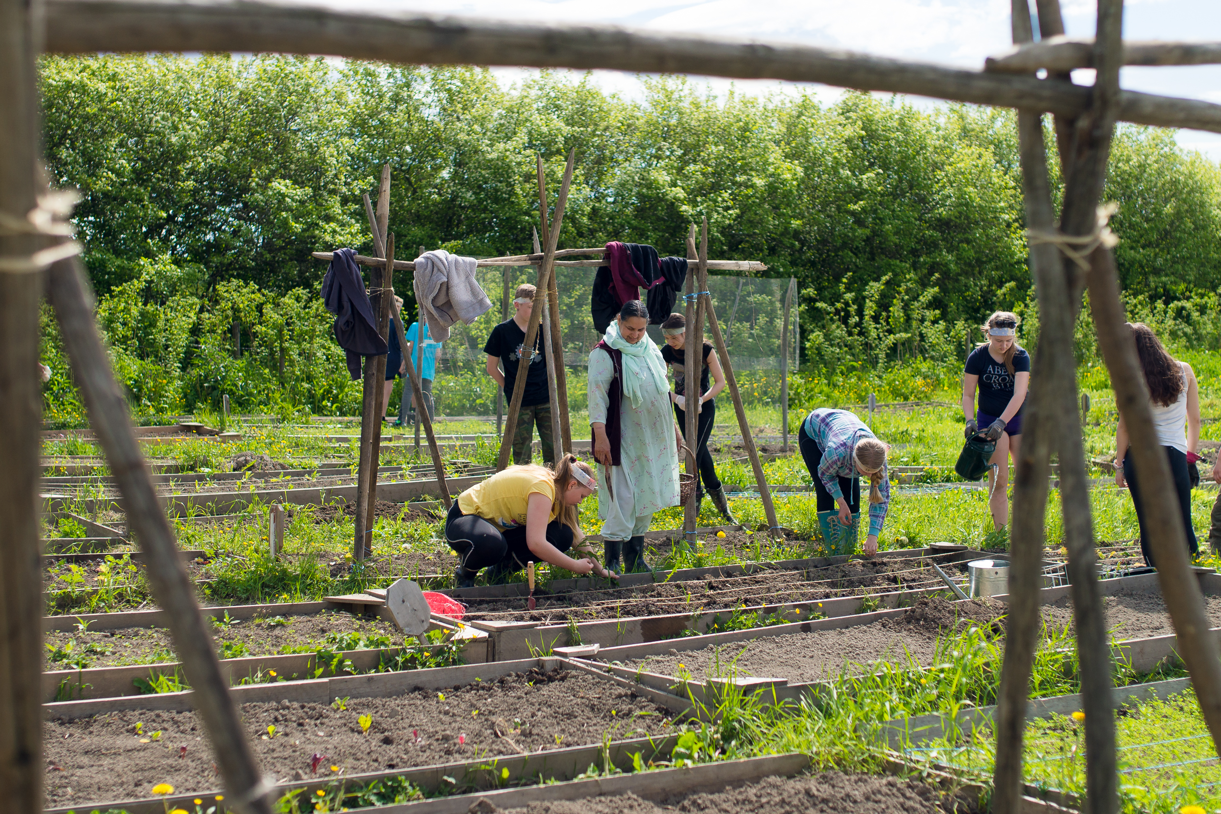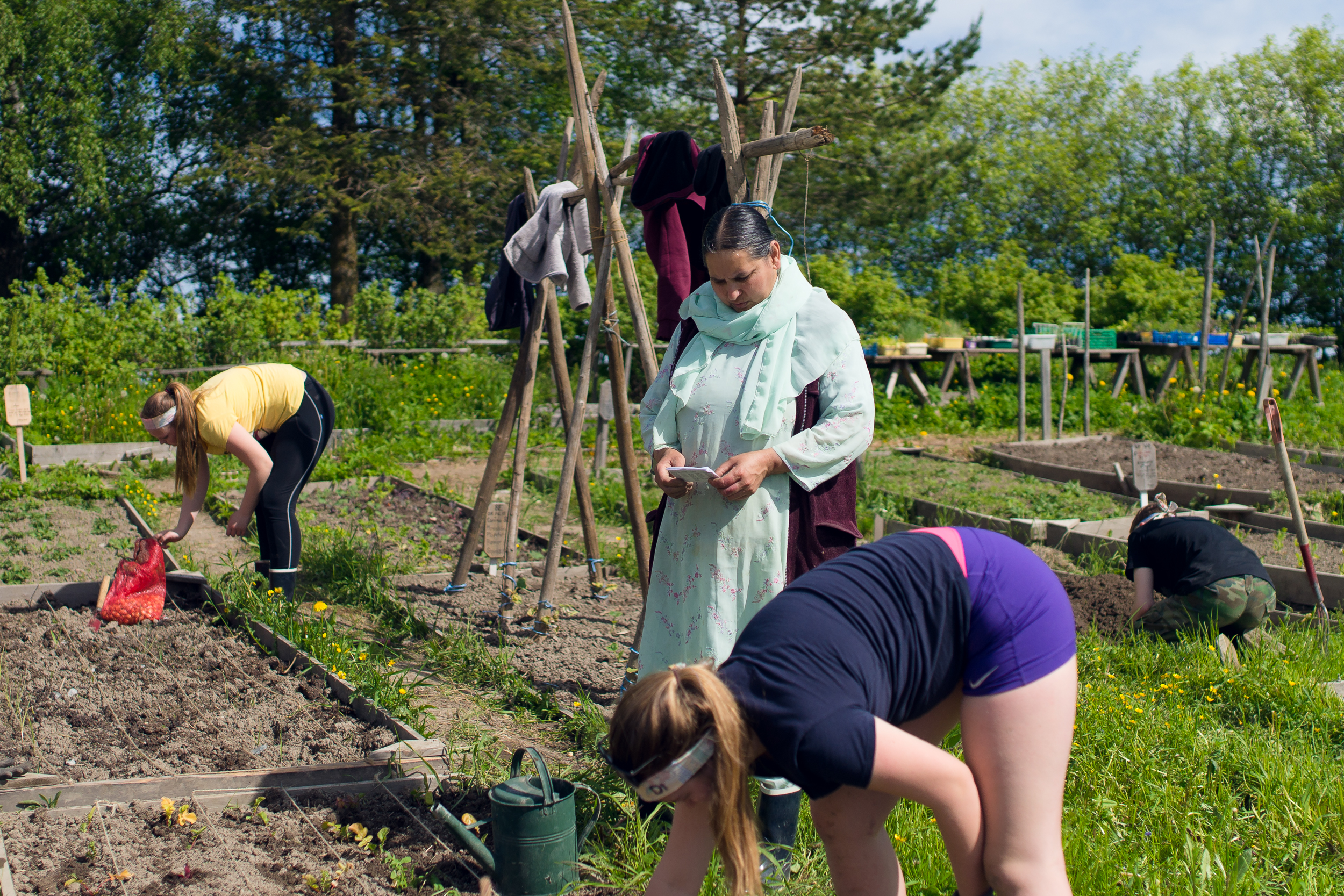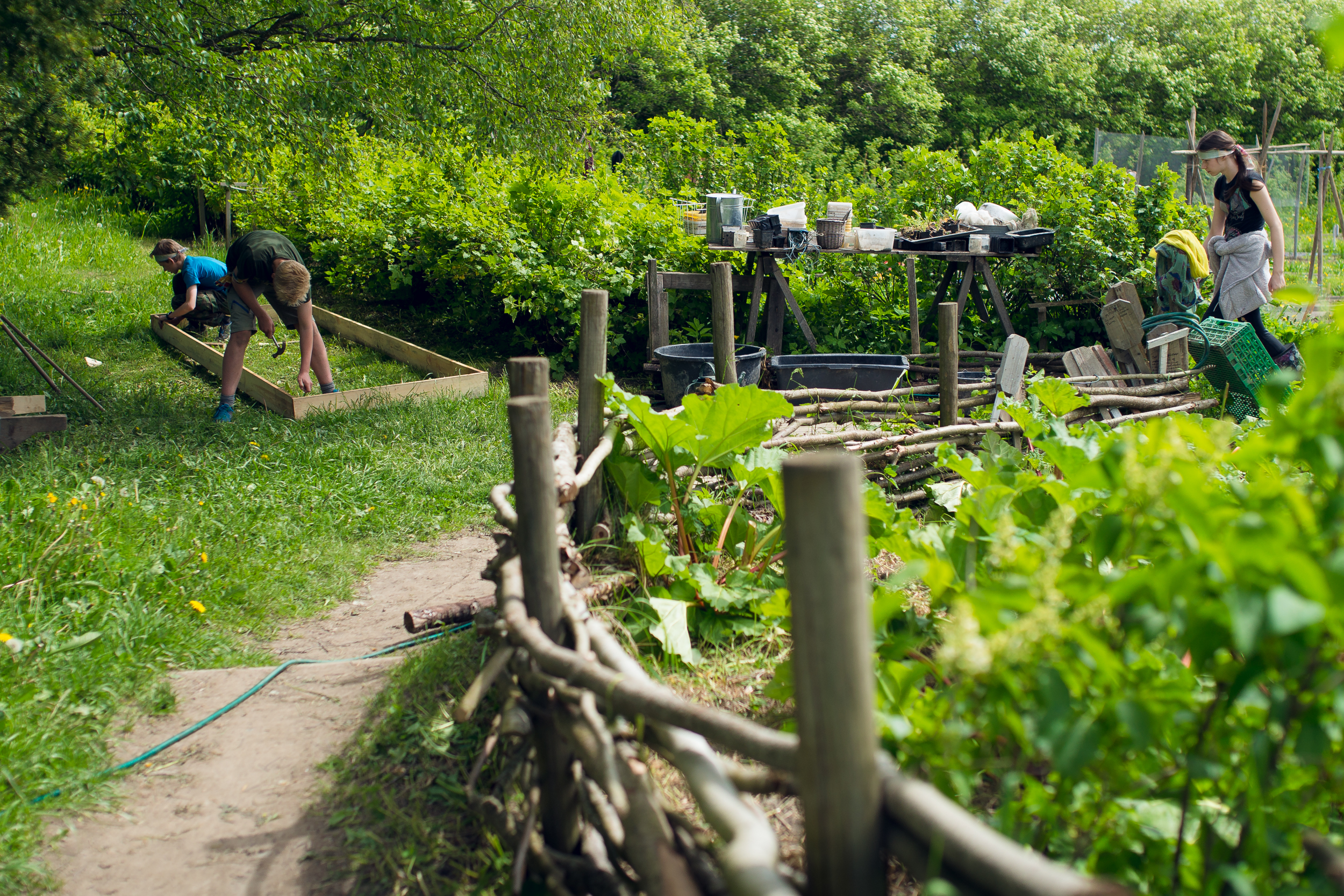 The team also picks other herbs like Angelica and ground elder to use in a salad. Some of the pupils are busy in the garden, tending to the plants already there and sowing some new together with teacher Martha Fodnes who works full time at the farm.