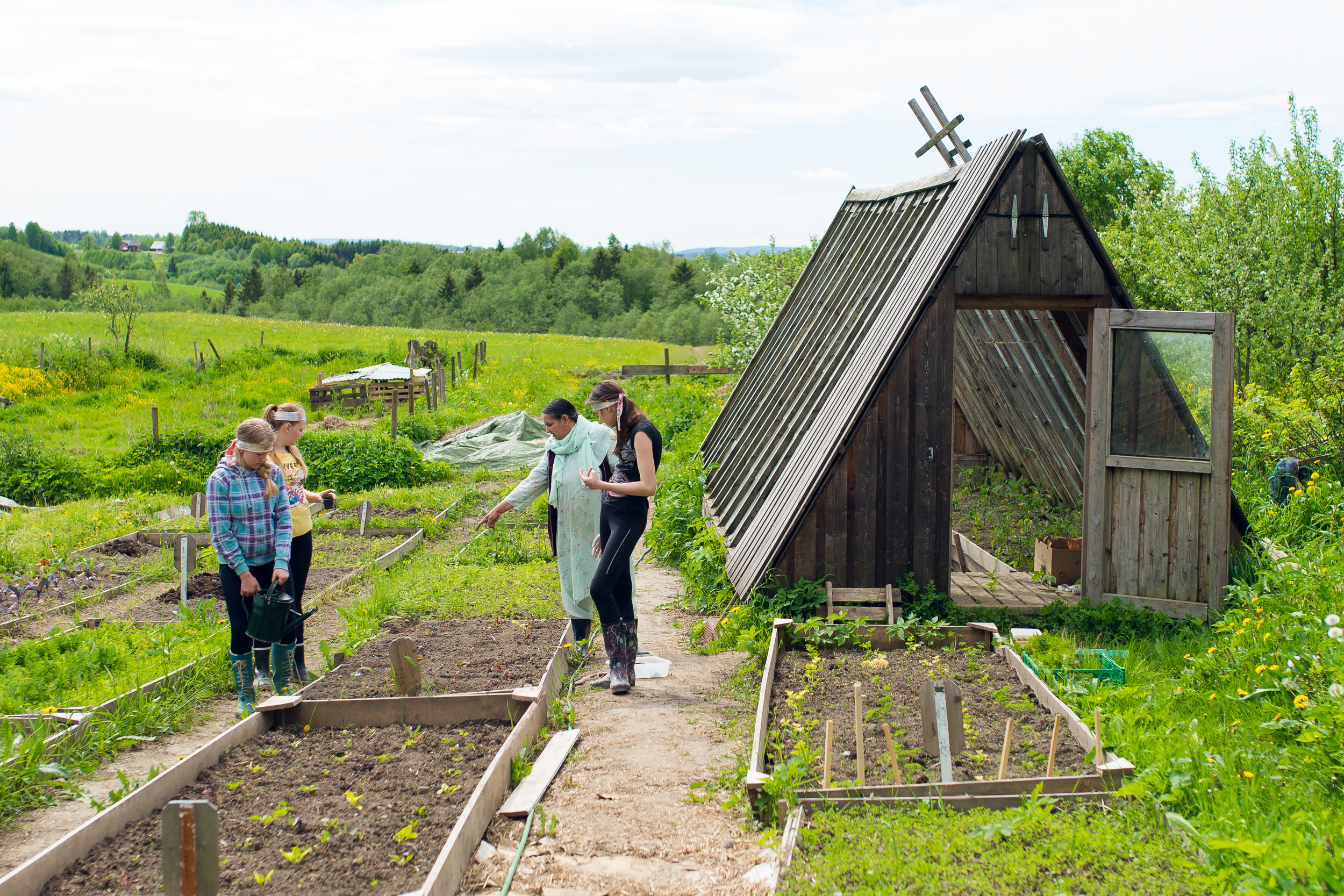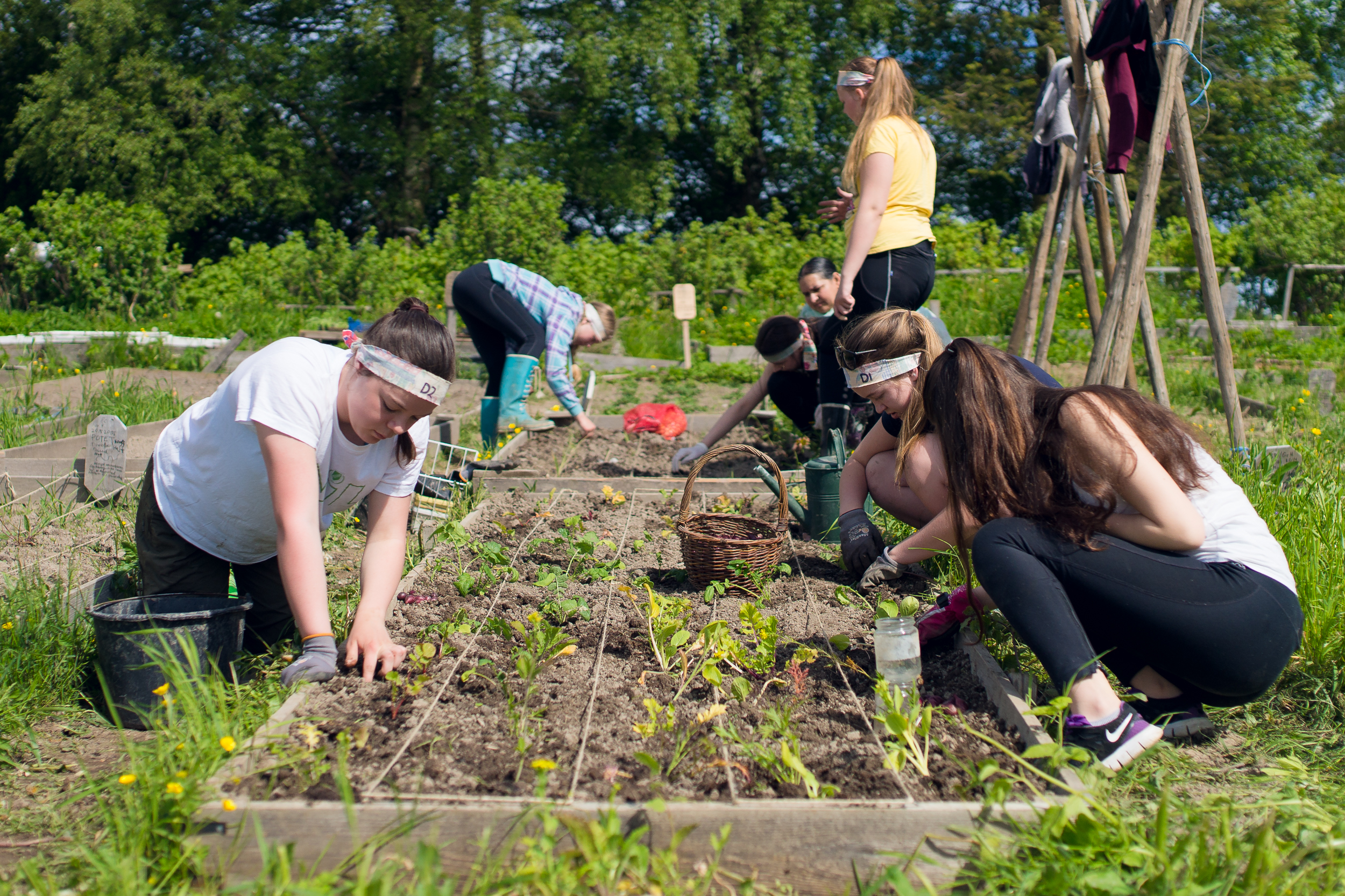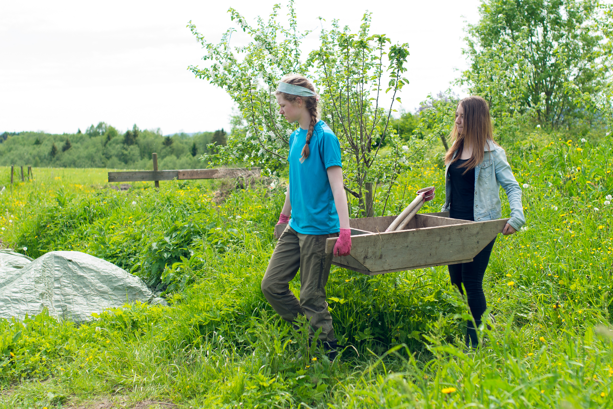The team also picks other herbs like Angelica and ground elder to use in a salad. Some of the pupils are busy in the garden, tending to the plants already there and sowing some new together with teacher Martha Fodnes who works full time at the farm.
