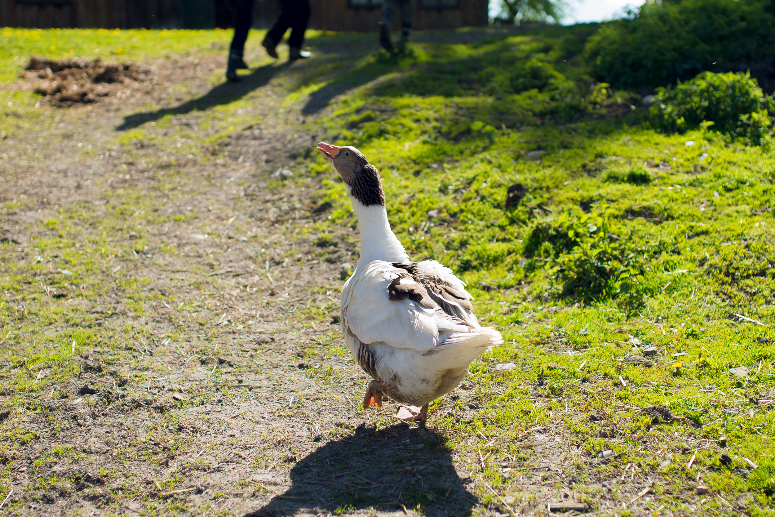 As the cow moves across the lawn the white goose goes off on a rant. The cow answers in the same manner, like it’s yelling back – before disappearing down the hill. They are having an agrument of sorts. Same ritual happens with the next encounter between goose and cow.