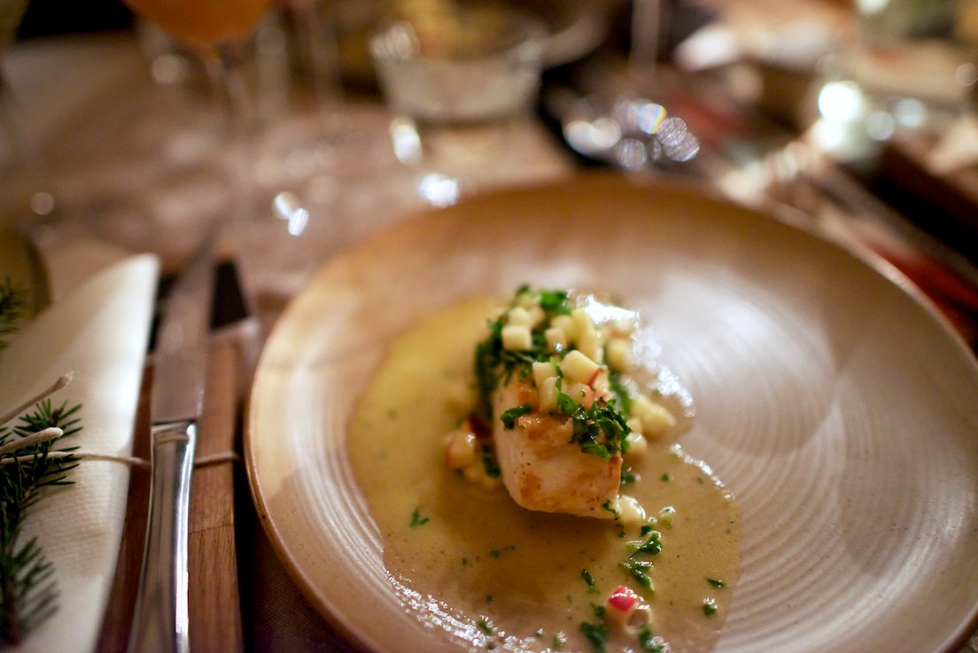 Course 2: Fried Halibut with Apples, Kale and Wheat Beer Beurre Blanc. This next course managed to silence the little corner of the table I was sitting on. Pristine Norwegian halibut was pan-fried in butter and served with cubes of crisp acidic apple, bitter kale and a sublime beurre blanc made using wheat beer instead of white wine. This was a light, fresh tasting dish with spicy notes of orange and coriander seed coming through from the beer sauce.