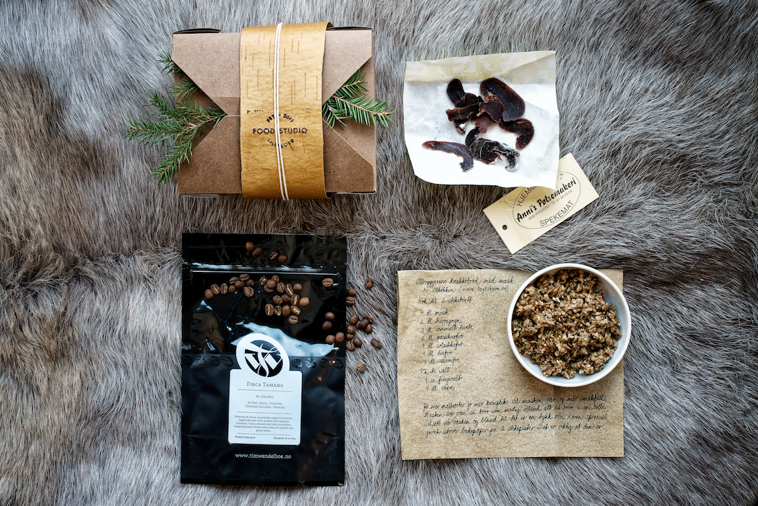A huge thanks to all of the fantastic people who made this event happen: Ian Stendera at Oslo Winterpark who let us play at their lovely location together with Jonny Bakaas and Rune from Tentipi Hamar, who delivered the perfect space and made sure our guests stayed warm. Veslemøy Hvidsten at Moestue Grape Selections, the importer of Bøgedal beer, who helped us source the beer for the night, which isn’t usually available in Norway. Stein Arve Bernes and Ingrid Lillebø from Godt Brød Tryvann who let us use their facilities and delivered the bread for the nights. Eva-Lena Degerhäll from Granit who let us use their interior decorations to create the perfect backdrop to the Norwegian forest. Niklas Jiberg at Tingstad for giftbox packaging. Finn Paulsen at Fretex who supplied the cosy warm lusekofte jumpers and sheepskin jackets. And of course, all of the wonderful Food Studio team together with the team from Tim Wendelboe, whose tireless efforts made this event happen.