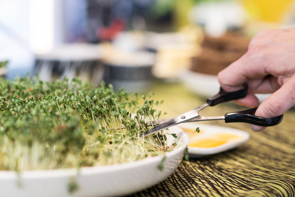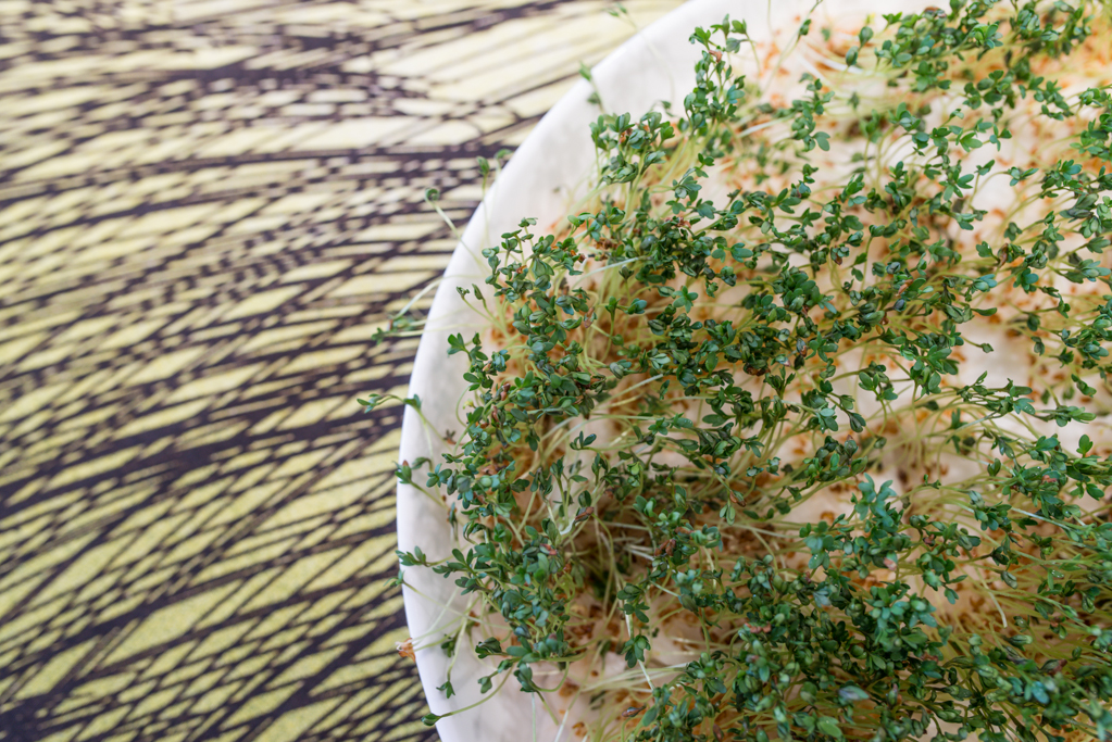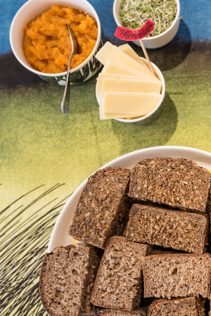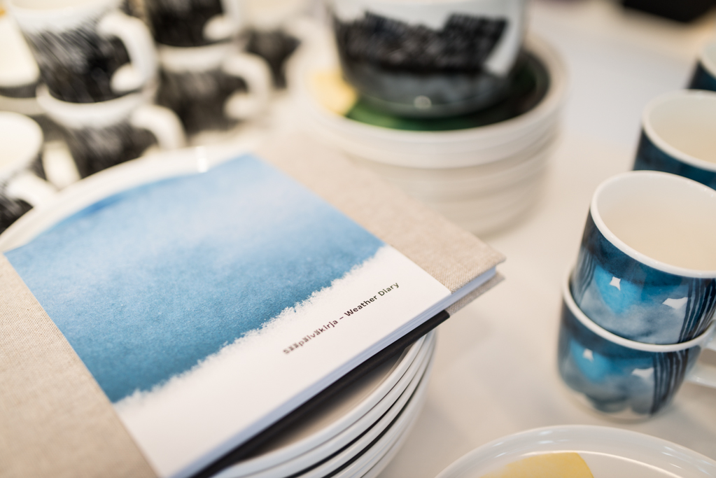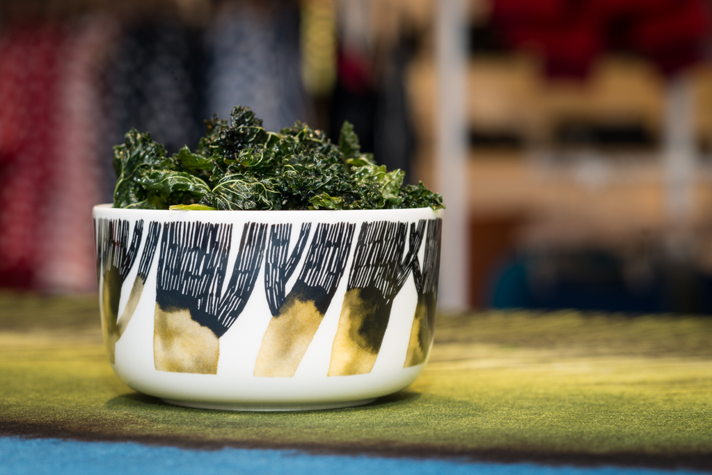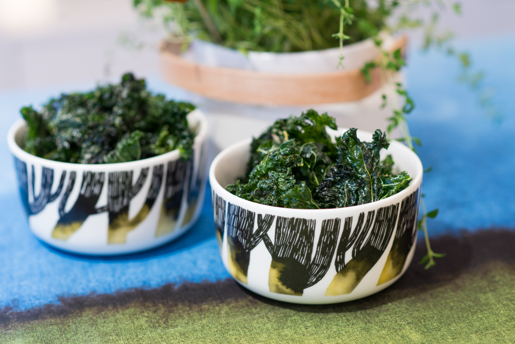 “The Weather Diary products reflect the weather and nature, and the food and its visual representation is an extension of that. The cress and herbs bring nature inside, and the colours and form of the apple rolls and kale chips are in harmony with the patterns. Also, the fresh tastes focus our minds on the crisp and fresh autumn season.”