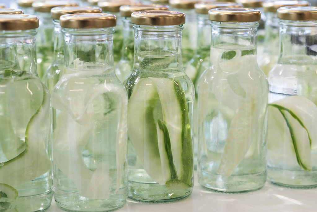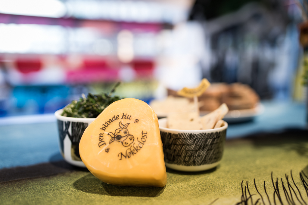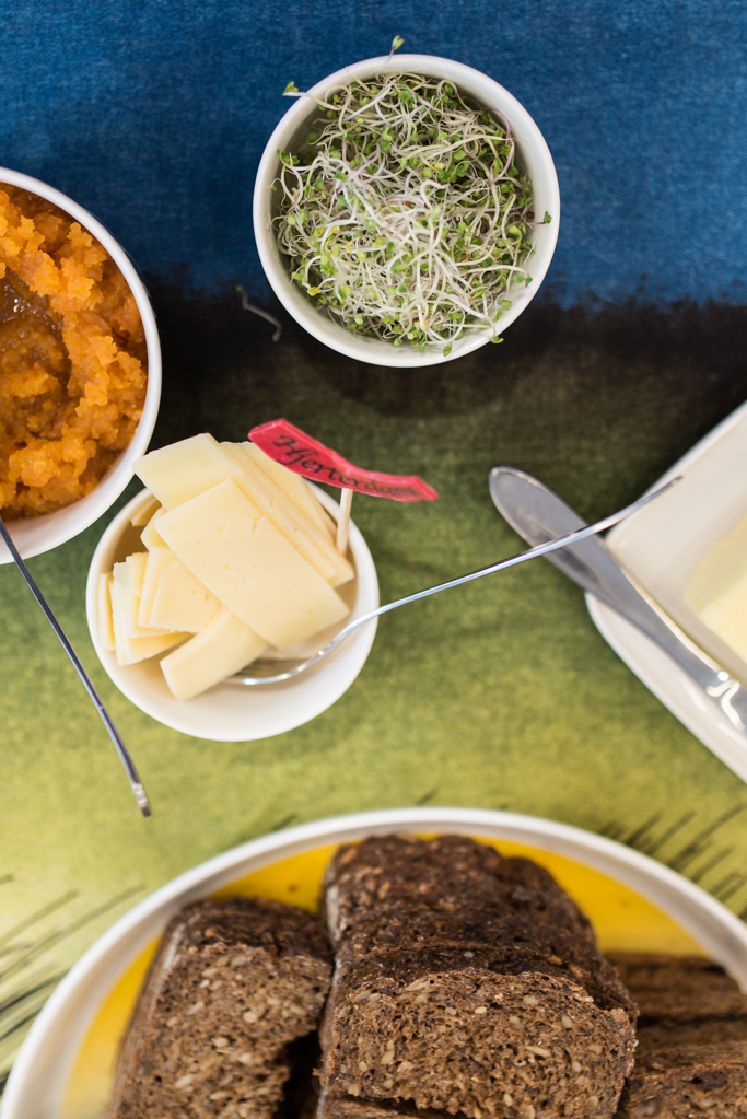 Dense slices of rye bread were served with local organic cheeses. A homemade carrot jam was made with carrots from Ramme Gård and was a perfect accompaniment to the cheese. Visually striking bowls of crisp kale chips dusted with salt were a tasty and healthy snack that were washed down with a cooling cucumber and mint drink.