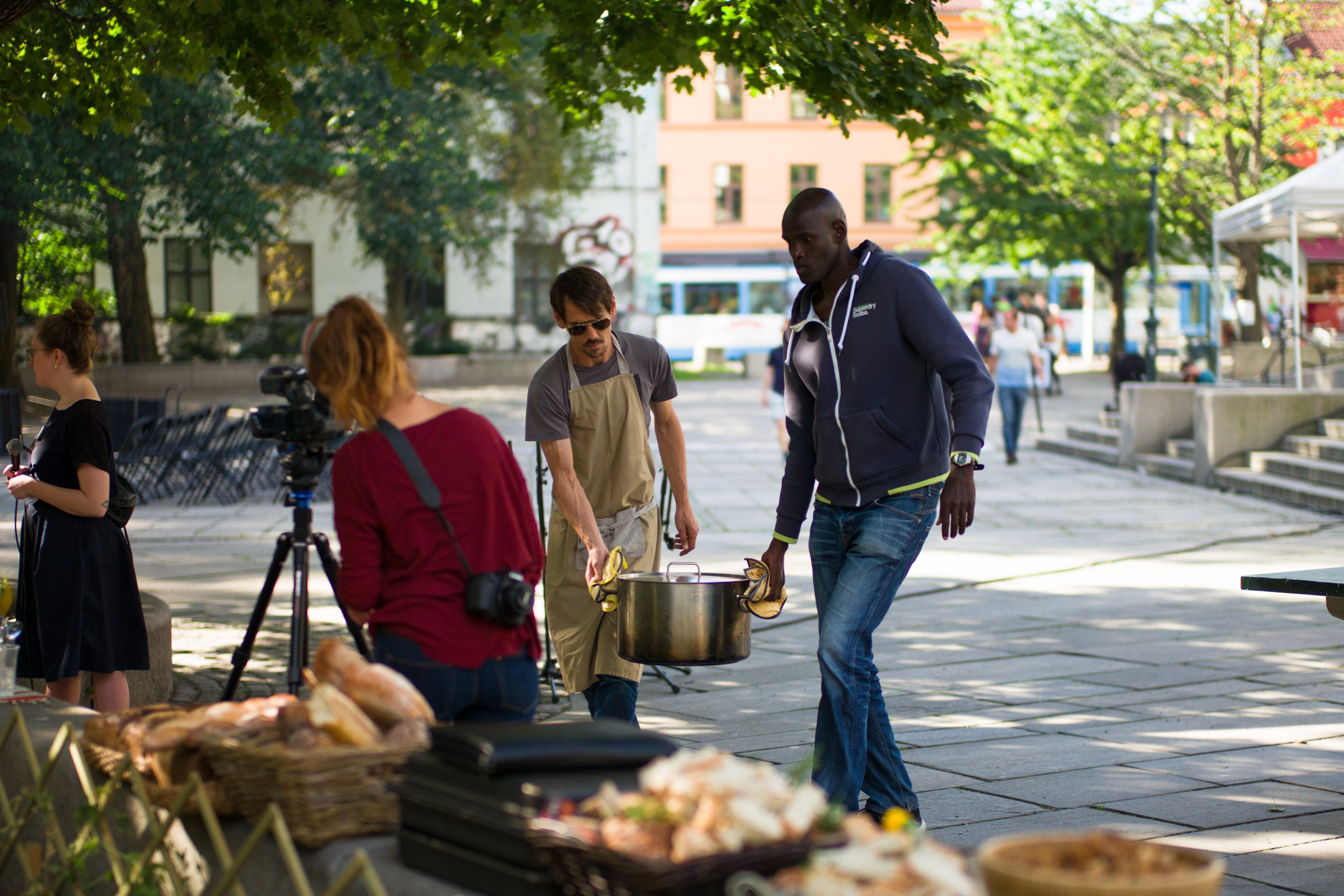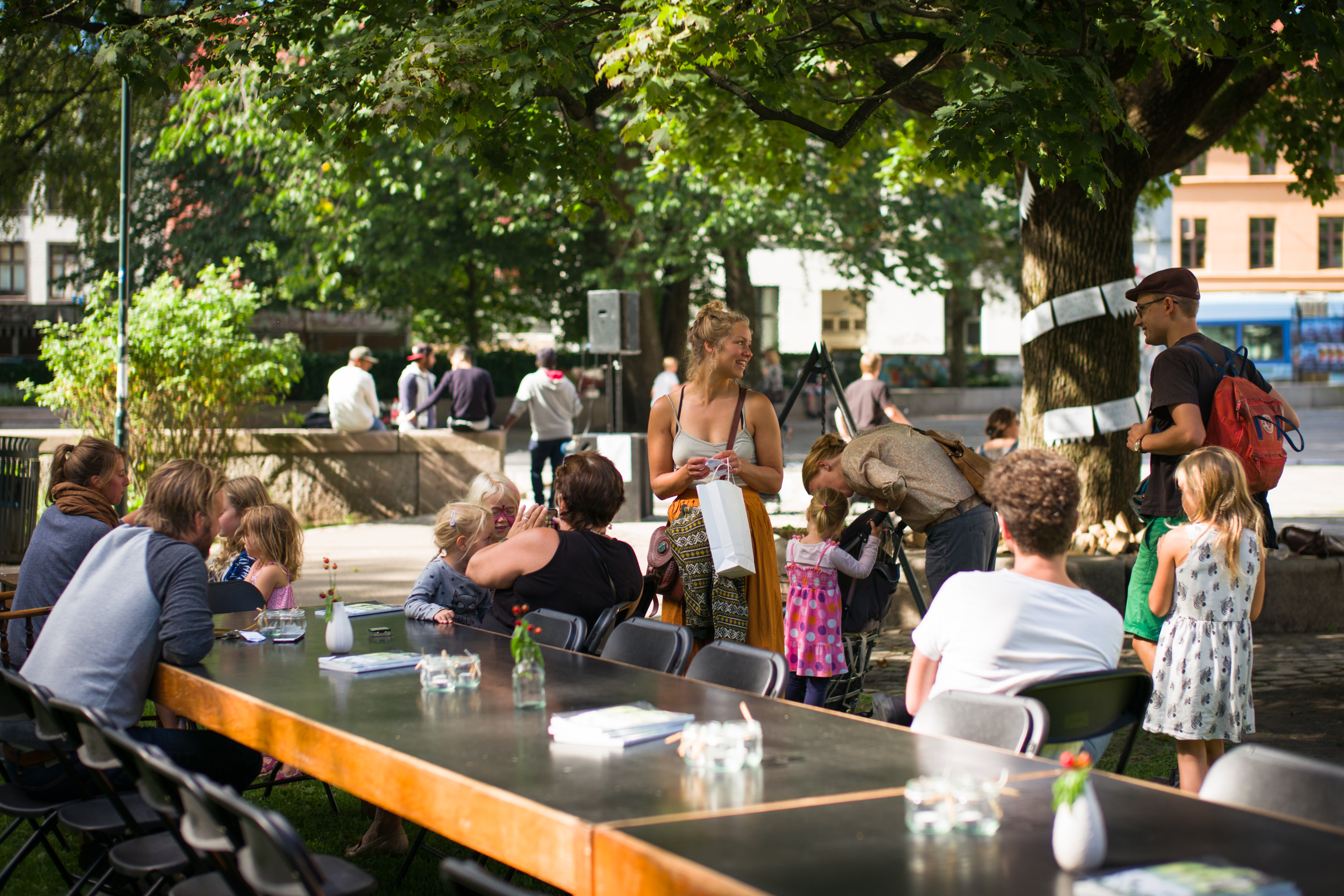«Nabolagsbordet var et anslag på det vi skal gjøre neste år, med utendørskafé drifta av ungdom», sier Kenneth. Han forteller at Schous plass de siste 30 årene har vært nærmest uforandret, og at bak prosjektet ligger spørsmålet om hvordan Schous plass kan bli et mer attraktivt og trygt sted for hele bydelen – og mat står sentralt. I år har de såvidt startet på endringsprosessen, med urbane dyrkekasser, for urbant landbruk er en flott måte å utnytte et byrom på, og skape mer liv der. På innsiden bygger de opp en større samling av bøker om dyrking og matkunnskap, og kaféprosjektet skal skape en positiv arena for både ungdommene som jobber der, og gjestene. Biblioteket har også holdt en serie arrangementer kalt Fremtidens mat, der smakebiter på – for mange – uvanlig mat har blitt presentert, og der er det mange som har blitt positivt overrasket når de oppdager at tang er så mye mer enn det man får i en sushirull. Kaféprosjektet er et samarbeid mellom Bydel Grünerløkka, Food Studios Cecilie Dawes og Sixtens – som består av gründerne bak Maaemo og Bagatelle, som jobber med et ideelt prosjekt for å rekruttere ungdom. Gjennom å bruke mat som en inngangsport, håper de å kunne skape arbeidsplasser og gi ungdom den erfaringen de trenger for selv å våge seg ut på arbeidsmarkedet.
