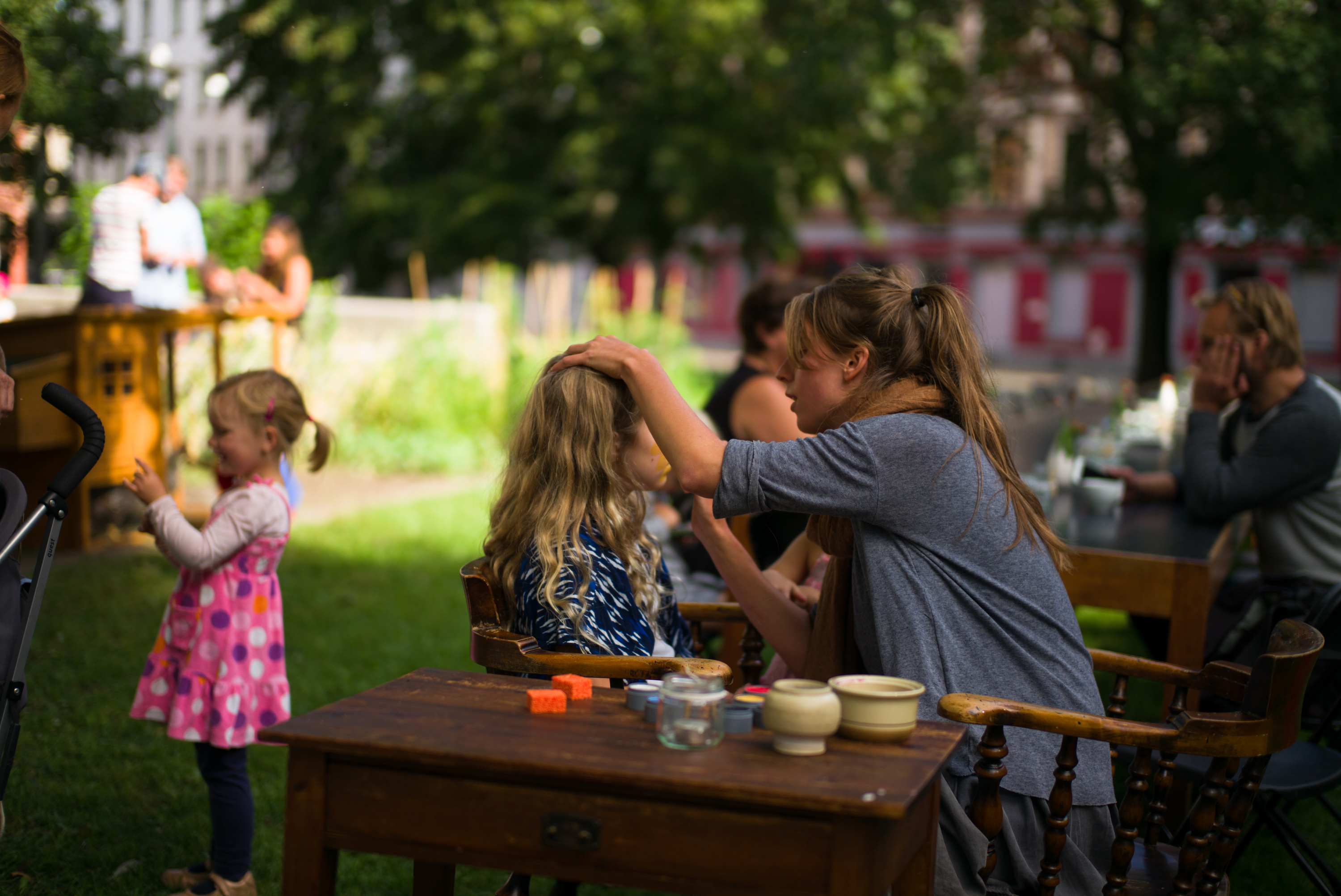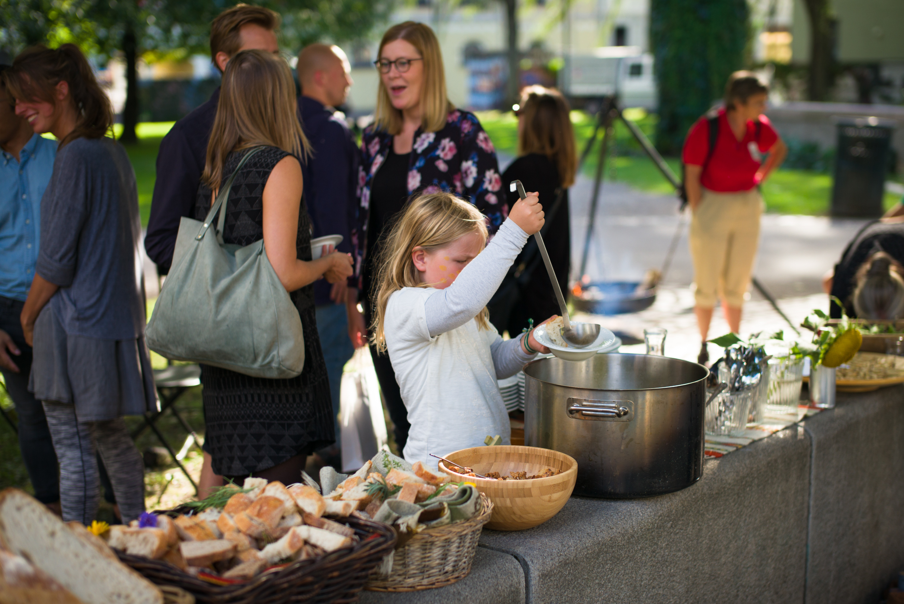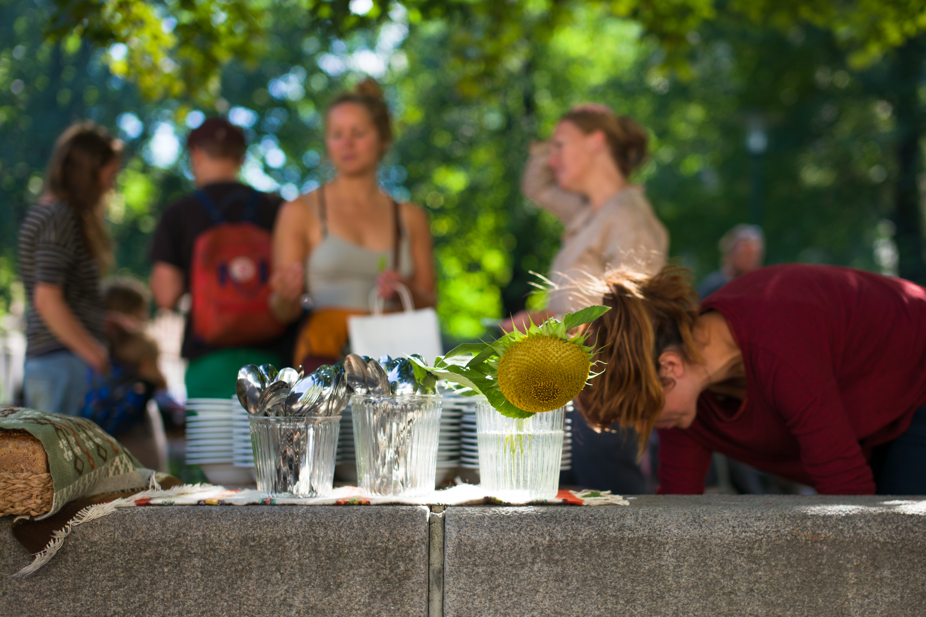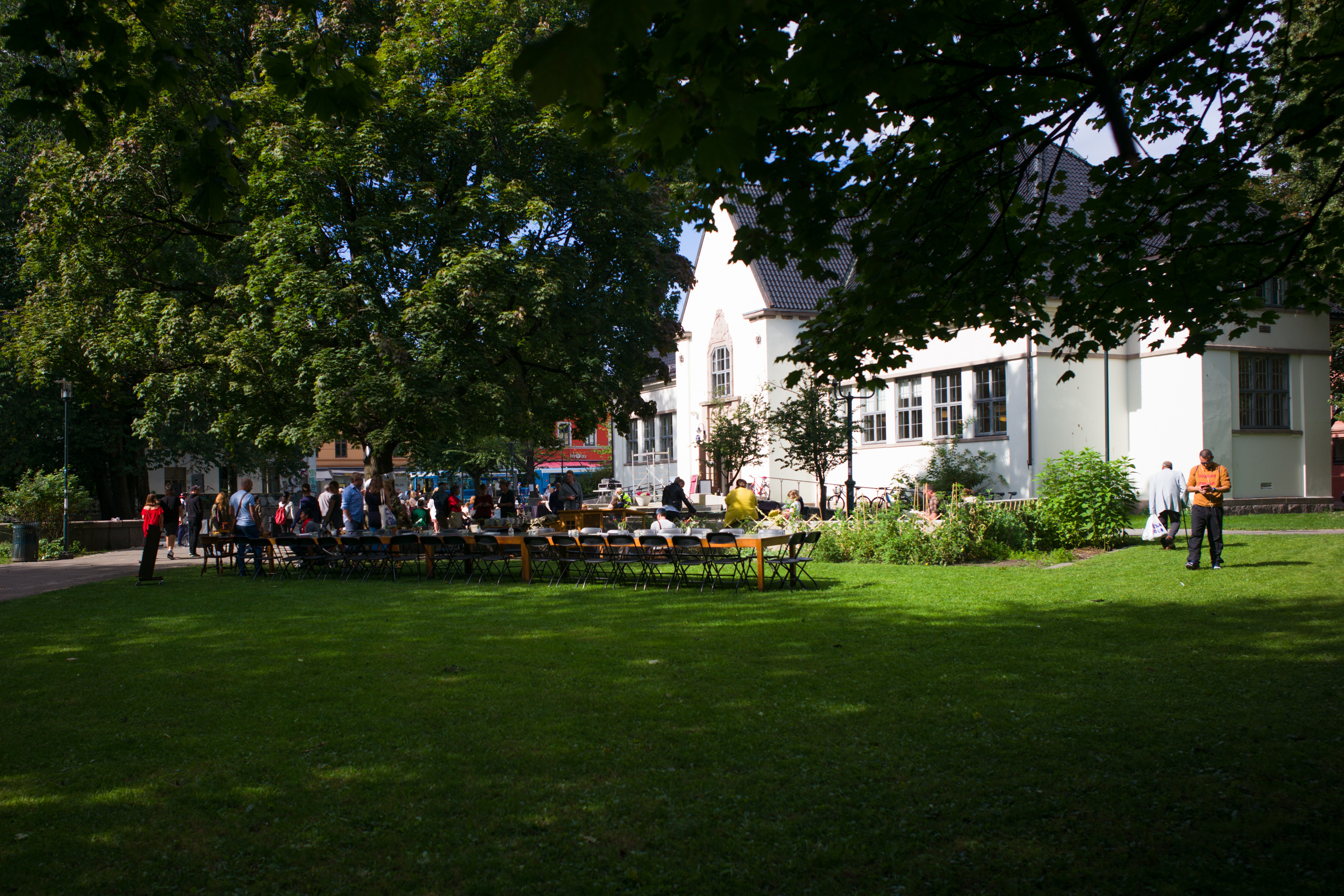 På en varm, kanskje til og med usedvanlig varm, septemberdag i Oslo hadde Food Studio, Deichmanske bibliotek og Quo Vadis invitert til Nabolagsbord – en dag fylt med samtaler, omvisning, hønsebesøk fra Tøyentuppene og ansiktsmaling for barn – før det hele kulminerte i en middag laget på lokale råvarer fra hagen på Schous plass og Losæter.
