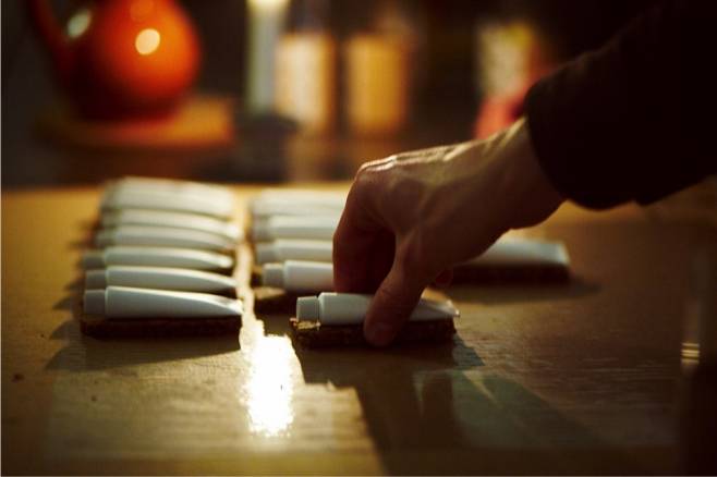 After Bo and Lasse, the founders of I’m a Kombo, had introduced themselves and told us more about The Social Act and what to expect, we were shown through to the next “work station”. Surprisingly we walked through the kitchen and in to another room. We received instructions on how to prepare our next meal. Cured meat was on the table ready to be sliced. The meat had been placed in small spice-filled plastic bags hanging on the wall. After a little shake we were handed some chopsticks to eat the meat with. A fun twist to the standard way of eating cured meat.