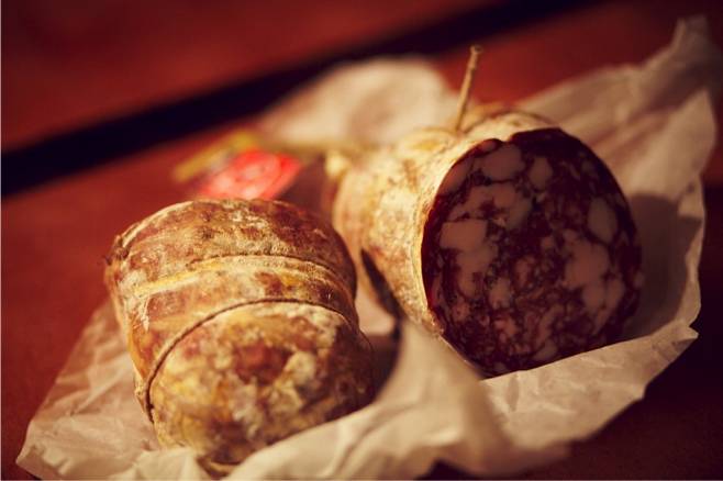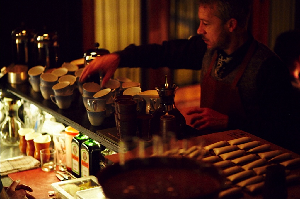 A few hundred meters down in Kødbyen we were greeted by a chef in the doorway of a small little restaurant called Høker Cafeen. He welcomed us in and we soon warmed up again. The place had a bodega feel and the folk music they were playing was gave us the feeling of stepping in to a different era altogether. There were logs of wood filled up against the wall along with baroque paintings.