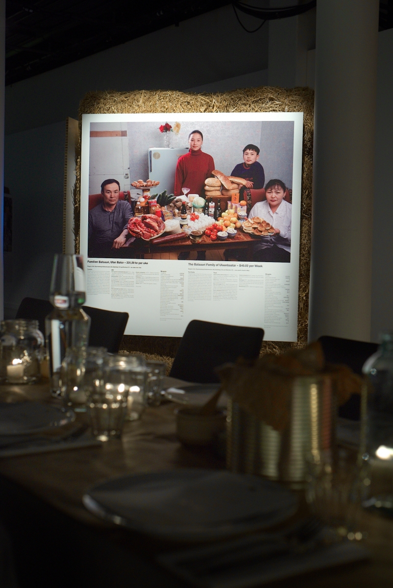 And so here we are, ready to dine amongst seven large haystacks displaying the photos of the families. China, Norway, Italy, Ecuador, Chad and the US, to mention a few, are countries represented in the work of Menzel and D´Aluisio which have been captured throughout the last 13 years. Results illustrate vividly what and how much food each family consumes of food and drink in the course of one week.