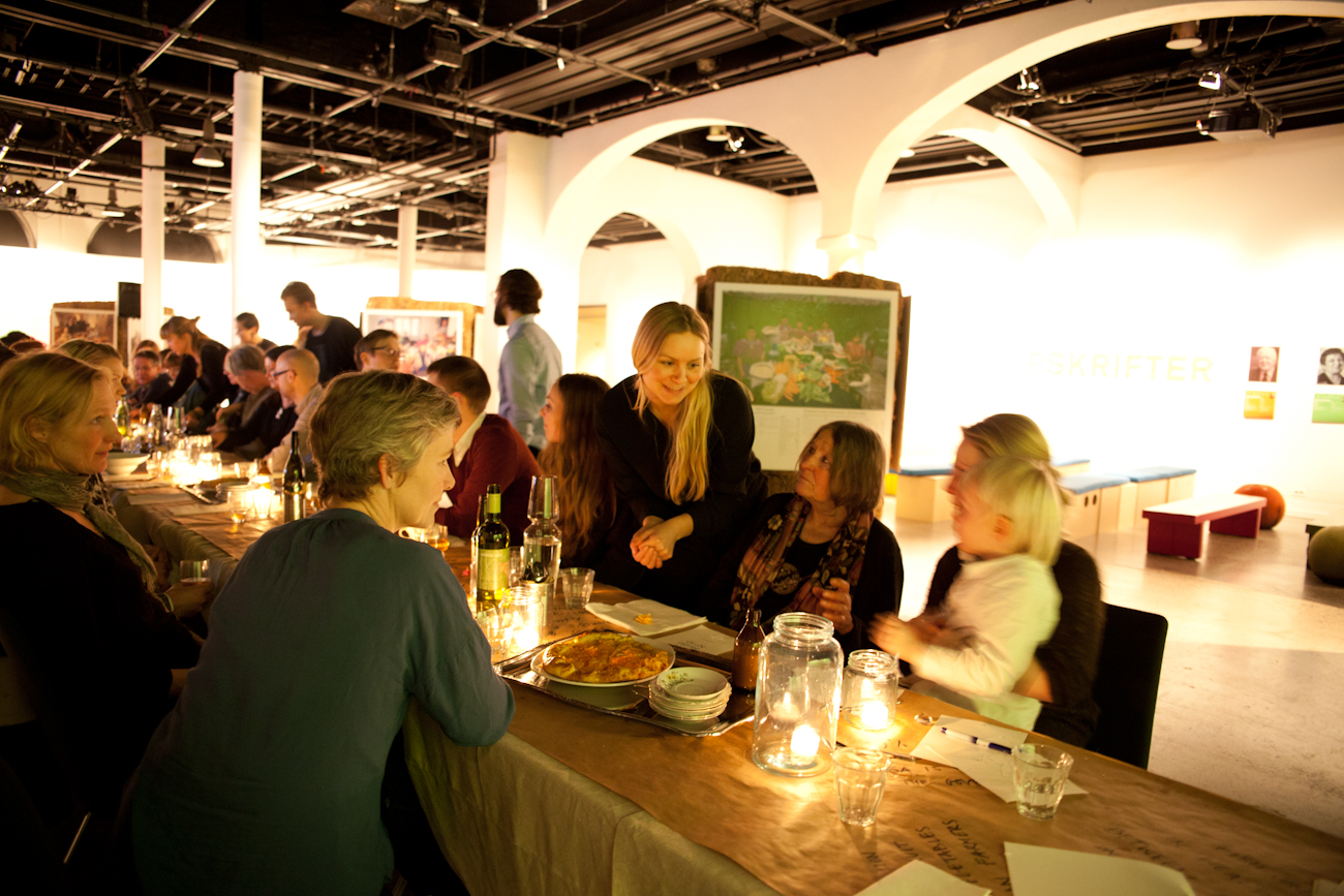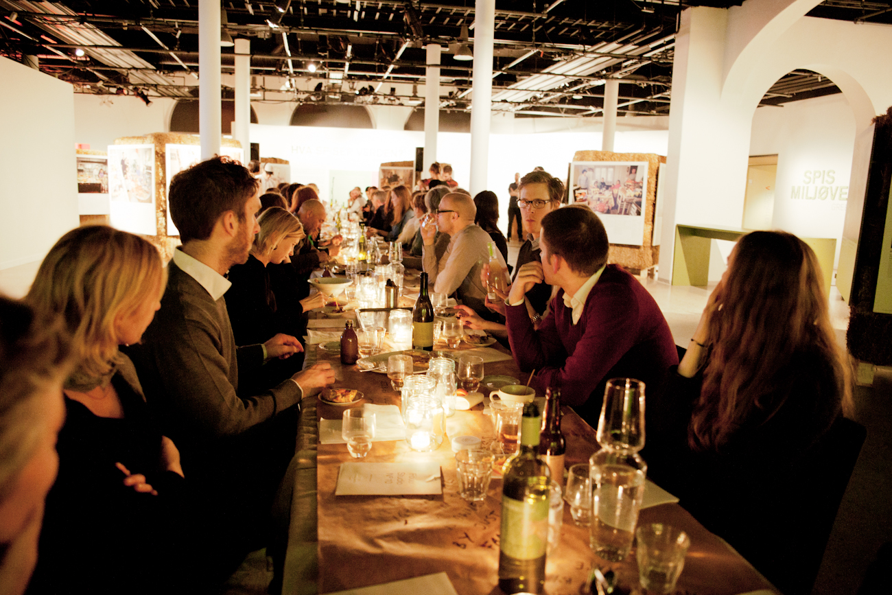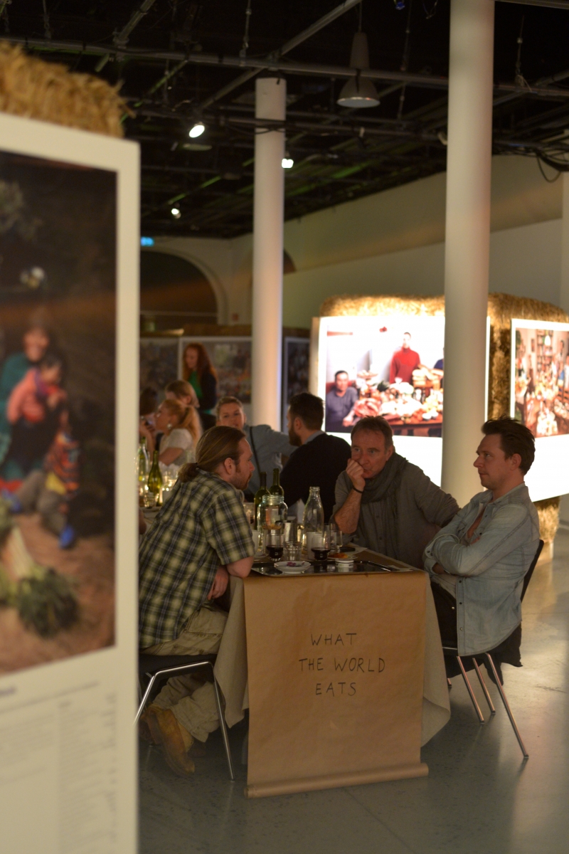 It is a wet day in Oslo. The evening is dimming outside of the Nobel Peace Centre and bypassers are rushing to get home. Coincidently it is Valentines Day and slowly our bunch of 55 guests is filtering through the front door. But tonight is not about staring into only one set of eyes – we’ll be feasting amongst the 25 exhibited families from all over the world, right in the middle of the “What the Word Eats” exhibition.