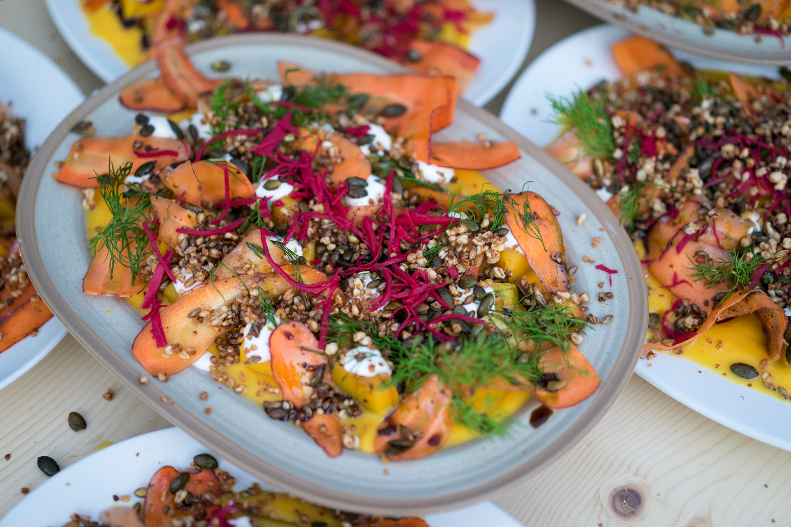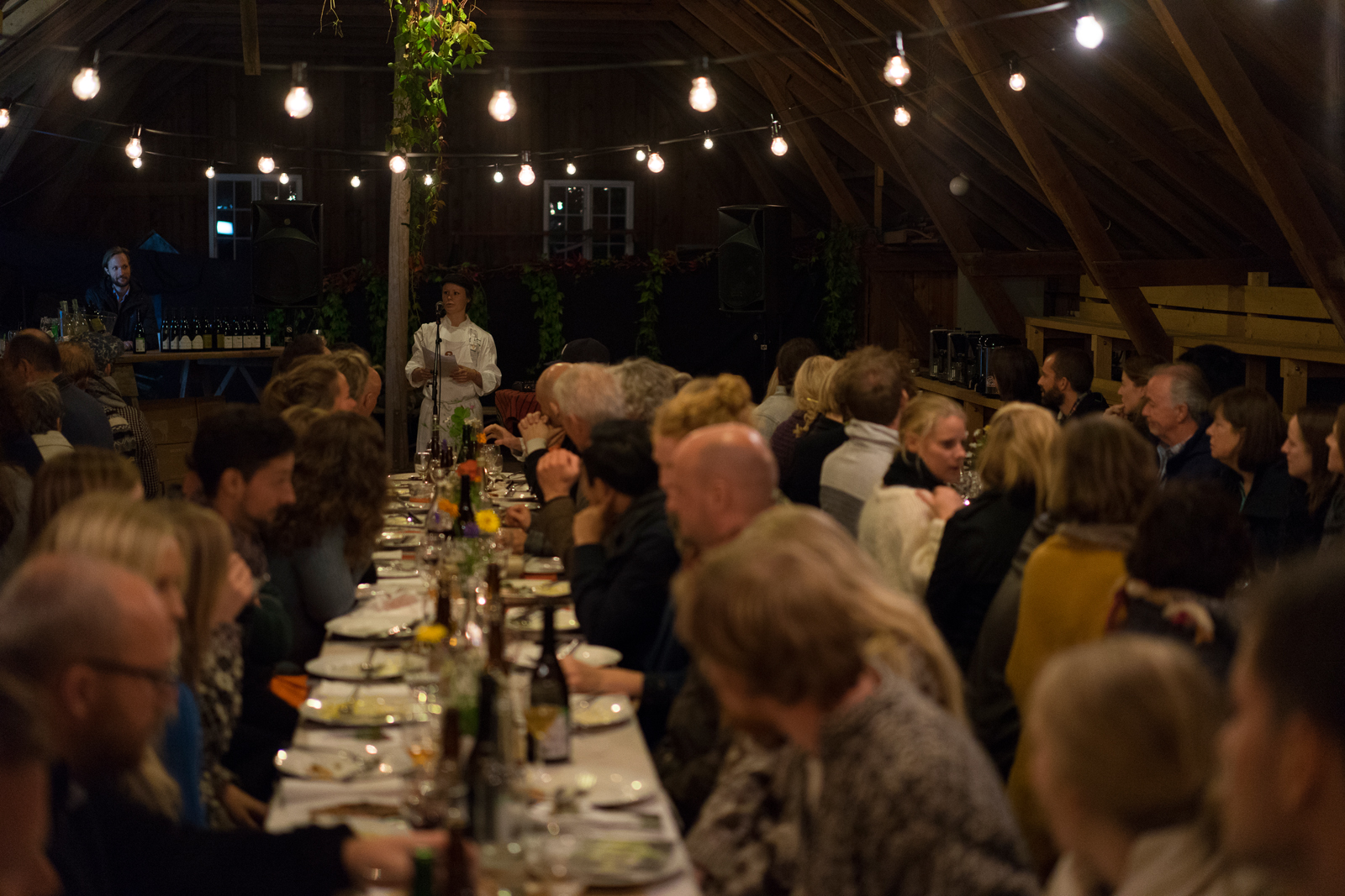 Thanks to all of the wonderful people and producers that made Bygdefesten happen! Bondelag chef of the year Karla Siverts and her team Kristin, Julie, Jan Robin and Masayo. Bartenders Frederik and Jørgen from Non Dos, and coffee brewers Ben and Astri from Tim Wendelboe. The menu of the evening was built upon Norwegian ecological and local produce, with vegetables that the ØKOUKA team had planted in the spring especially for Bygdefesten at Gartneriet. The rest of the vegetables came from Gartnerhallen and Korsvold Farm. A lot of local meat producers contributed to this year’s feast as well! Thanks to Kongsgården, Indre Oslo Matforedling and ASK Farm. Holli Mølle stood for the grains and Thors Brød and Handwerk made the delicous bread. Olavsbråten Farm delivered fresh cheese, as well as Tjamsland Ysteri and Hitra gardsost. Honey tablets from Bybi and Vulkan Honning. Økosjokolade delivered the ingredients for the fantastic soil dessert together with Fars Solbær.