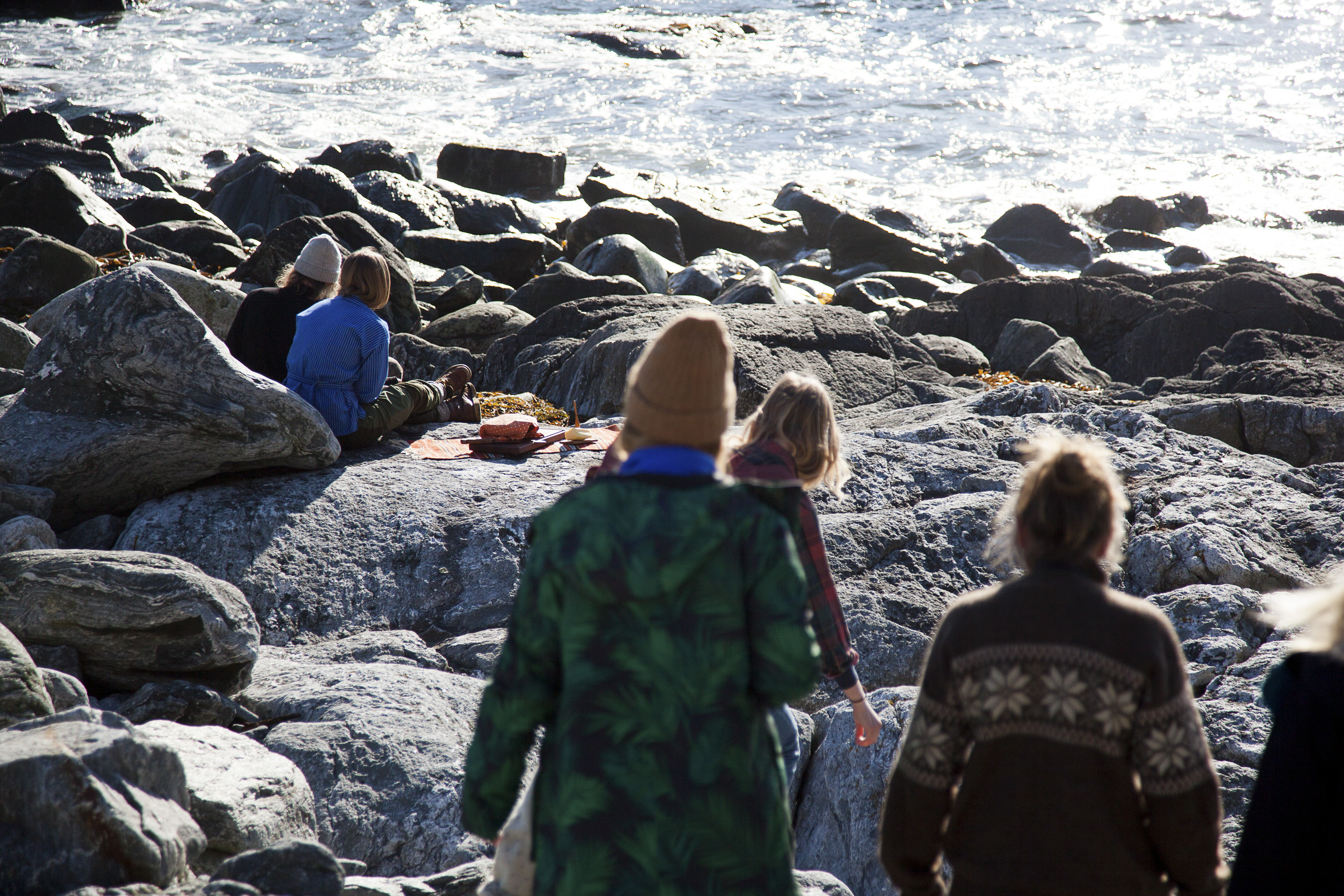 Being close to the shore, we could feel the sea breeze while eating the same type of seaweed we could see in the sea just meters away. Gathered by using stand up paddling boards (SUPs) and diving equipment the day before, the seaweed had been left out to dry overnight – and had a fresh taste of the sea. A soup with meat from Cornelia the cow was then shared. She was born on the grass outside of Anne’s house, where she grew up grazing from what Anne describes as the best grass in Norway. Anne keeps a couple of animals to graze on her land to restore and maintain the grassland ecosystem. Beef from cattle that eat only grass (without pesticides or fertilisers) have a higher level of omega 3 than conventional beef. And according to Anne they are never sick, have no problems with calving and have a good mood. When the time comes Anne share the meat with her neighbour Jan Ove and his wife Grete Hoddevik that lend her some space in their barn for her animals in return for the meat.