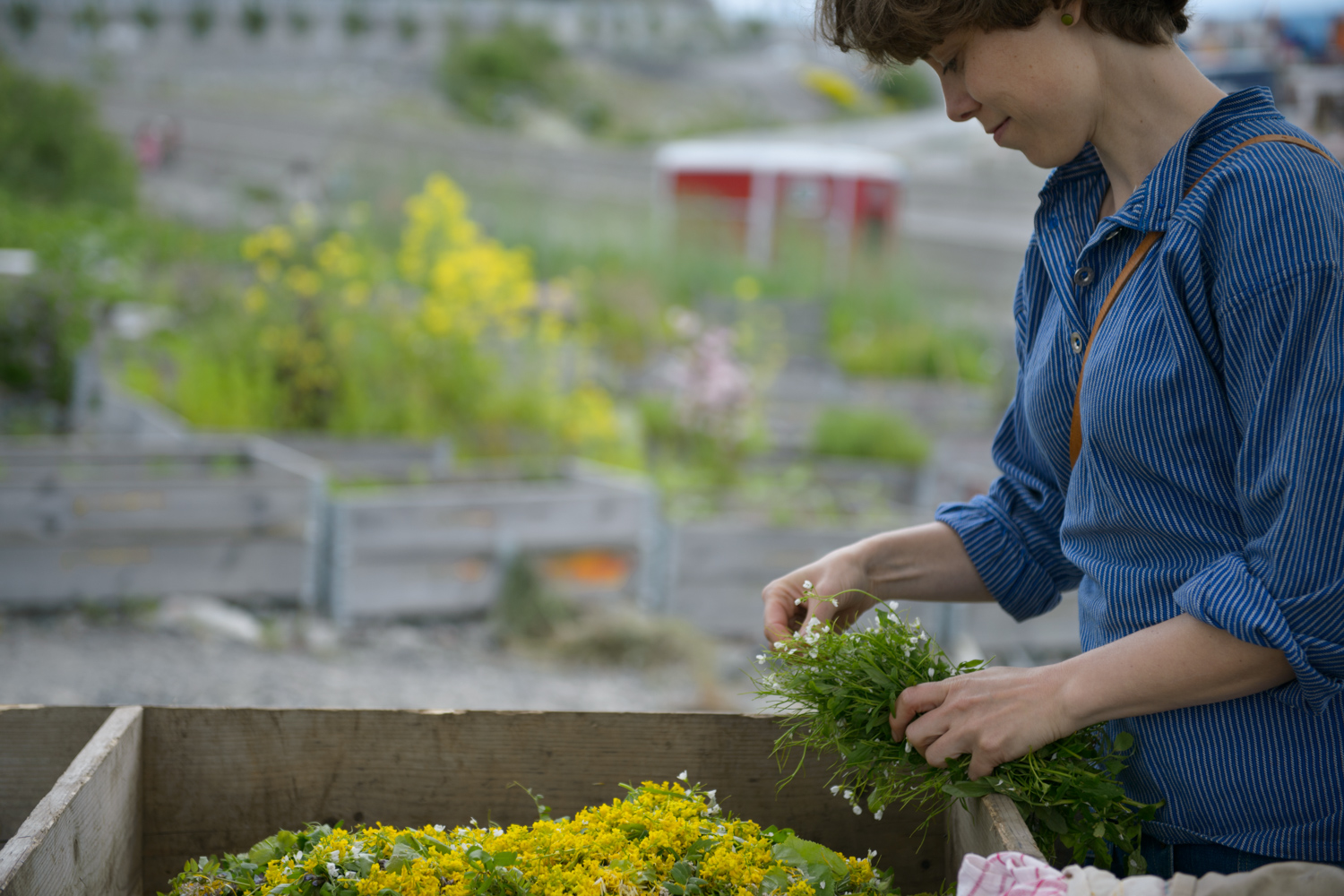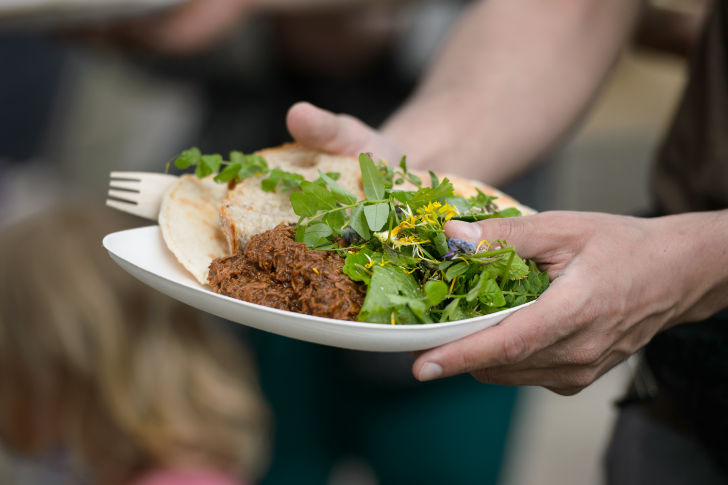 Chef Masayo brings more food to the table. Organic leg of ox from Heggeli farm braised over night, mixed with beer into a mexican stew melting in your mouth. Served with fresh herb salad foraged by the knowledgeable wild food-expert Britt Kornum, and of course, more naan bread. No one wants to leave, but we have to eventually as the wind picks up and it’s getting chilly. The Soil Procession is the third event by The Flatbread Society, initiated by artists, made possible by farmers and enjoyed by all who found their way to this little, green haven in Bjørvika. The bakehouse and grain field will be available for everyone in the city. For now, it’s a secret for most, hidden in between towers and traffic. But if you happen to find it, you will be surprised how wonderfully green and lush life can be in between the grey.