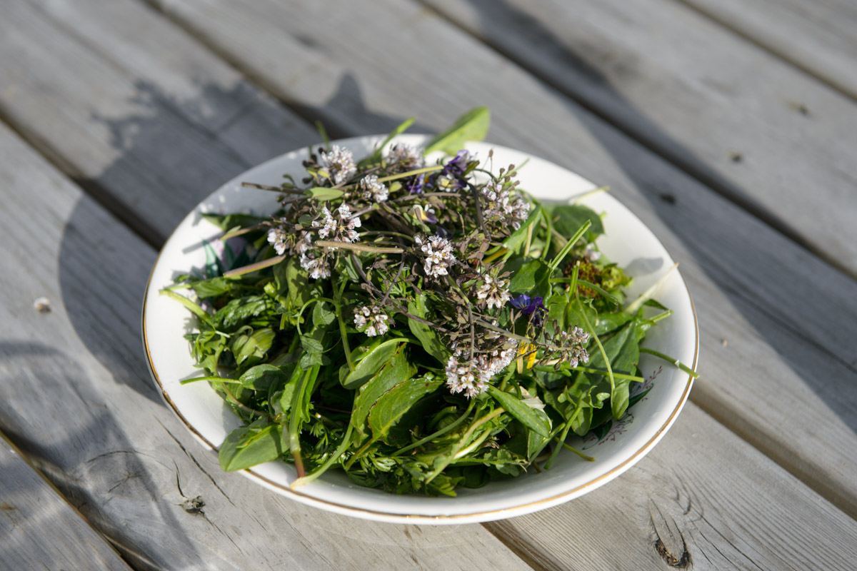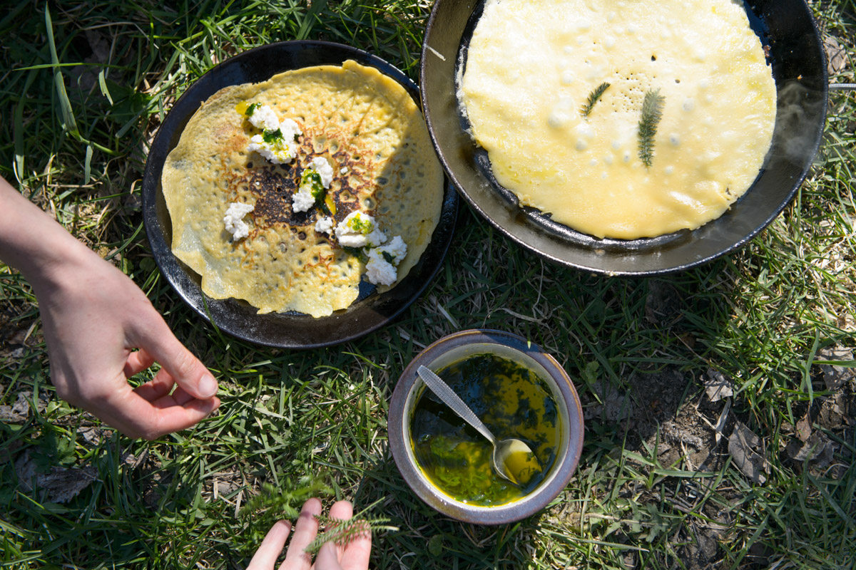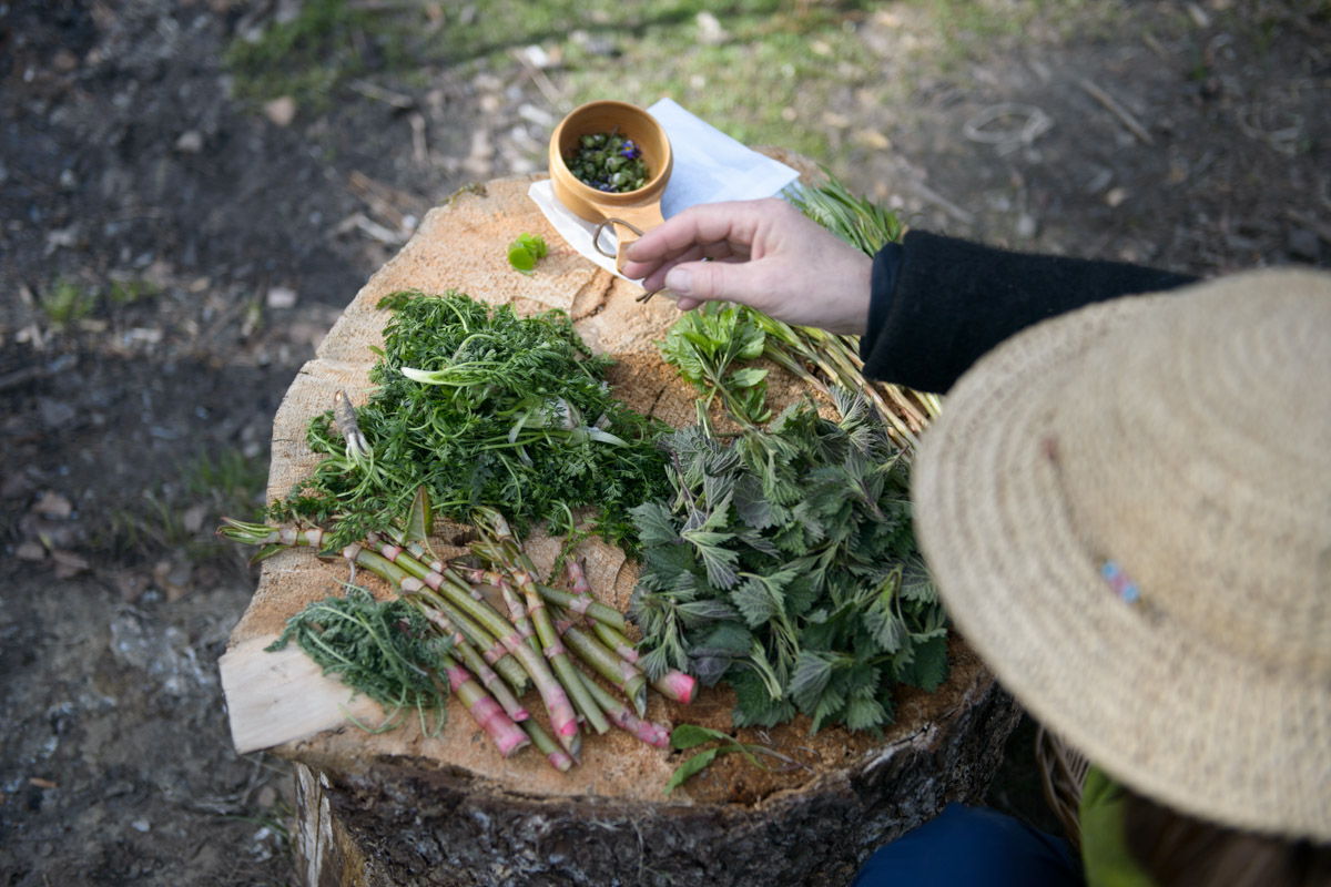Thanks to Britt and Øyvind for opening up their home in Eidsvoll and donating a rooster, spring vegetables and rhubarb wine, Bergsmyrene Gård and Røtter for vegetables, Jøndal Økologiske Bakeri for freshly milled spelt (making bread was such a pleasure!), Røisilien Bigård Minnesund for honey, and all of our guests for foraging, making dinner and wonderful company!
