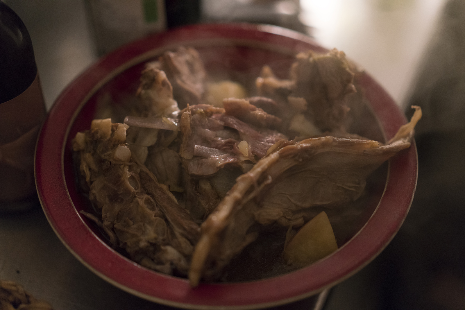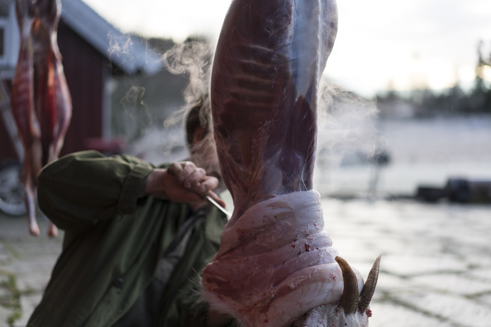 The main course was quite a treat. Dubbed Kje i Rosé , it consisted of kid cooked in rosé wine served with potatoes. The kid is locally sourced – from the island of Håøya in the Oslo fjord, where goats graze in the summer. Local farmer Helge Haugen runs a workshop on the island in the summer months, making and selling cheese from his goats. Just a few weeks before, some of the animals were slaughtered, and a number of these were refined by Magnus and Timon into this warming meal.