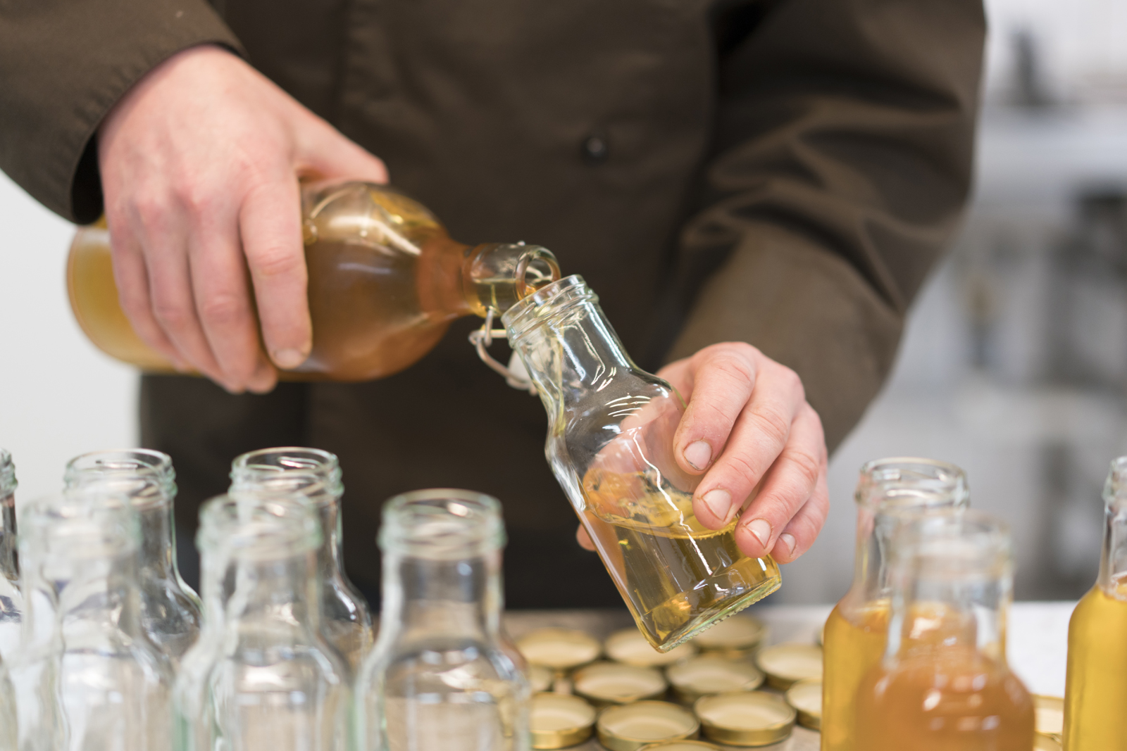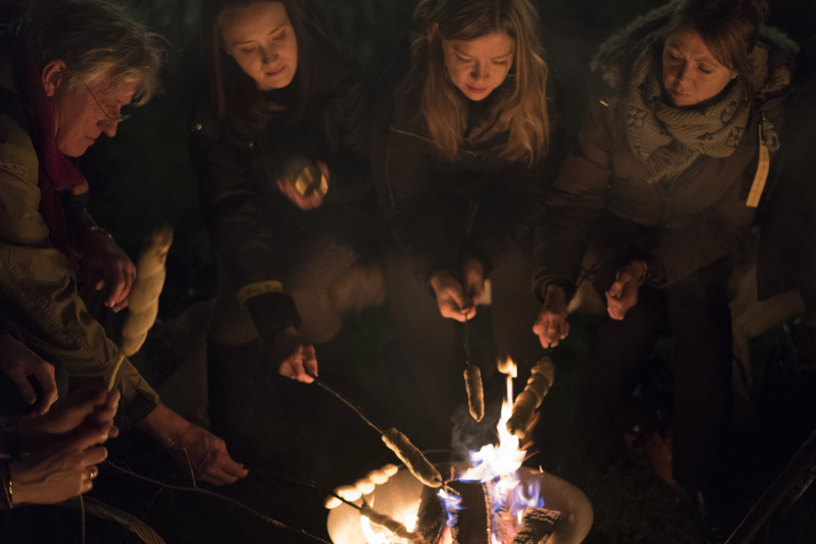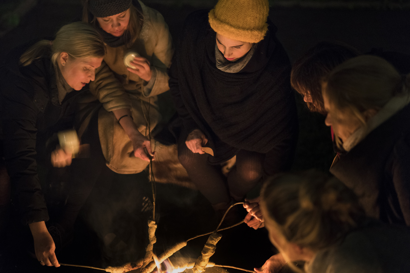 Most Food Studio events take place in more or less remote areas. We like to harvest from nature, and our getaways are normally excursions into places where our guests get away from the city and out to the woods, the seaside, or the country. This time, however, we decided to use our own premises at Prindsen, which is as central as you get it in Oslo. Our guests, wooden staffs in hand, were led through the vast backyard which is surprisingly tranquil when considering it is located in the heart of the city. Honouring the fact that this backyard was once a pleasure garden with blooming orchards, we lit a campfire outside our headquarters and made our guests sit down around it. Here, they were tasked with providing their own food: Making campfire bread twists (pinnebrød in Norwegian), and churning butter by shaking a glass of cream.