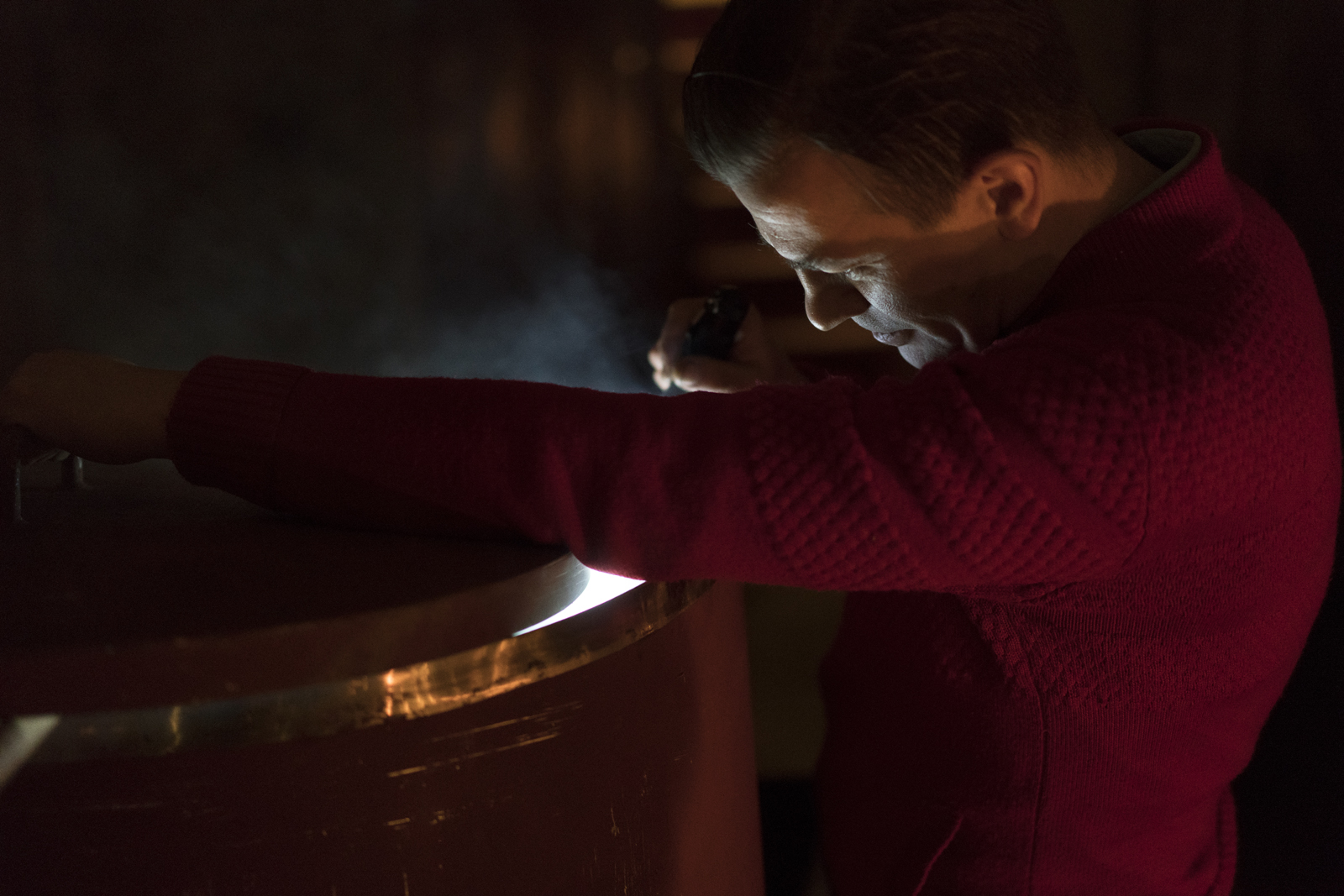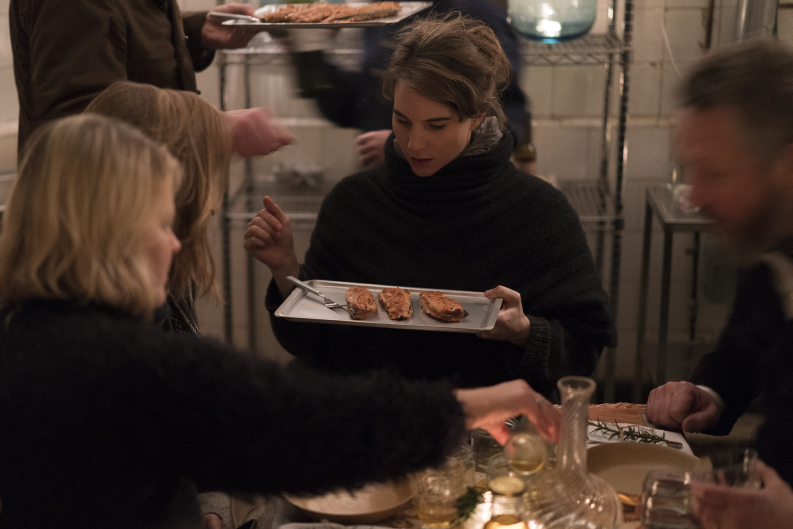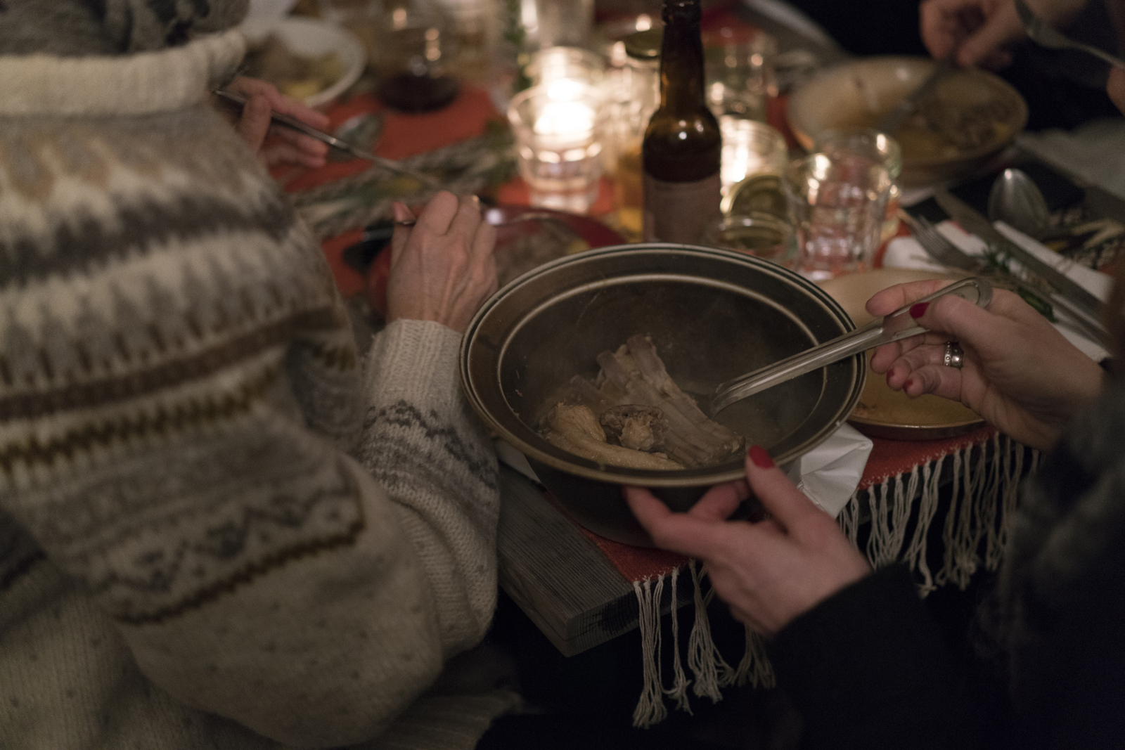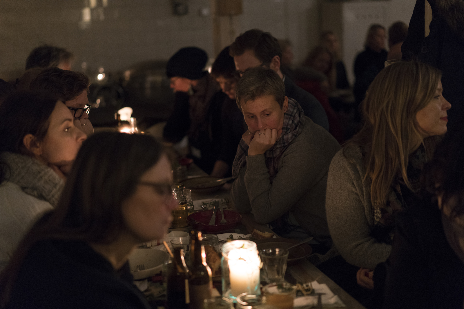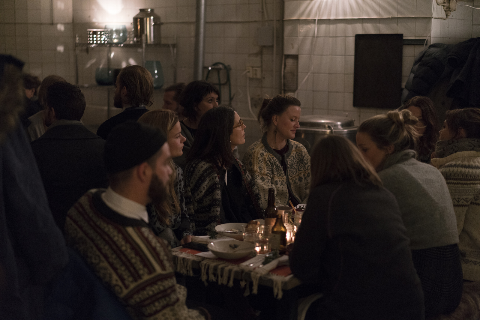 The campfire and the seemingly endless shaking kept people warm in the chilly evening. Meanwhile, a hot toddy and a snack of pickled and roasted root vegetables was served. Everyone got a sightseeing around Prindsen, which carries volumes of intriguing history and a spellbinding atmosphere. And finally, all guests were invited into the house, for the banquet was to take place in the old kitchen of the 19th century institutional factory building.