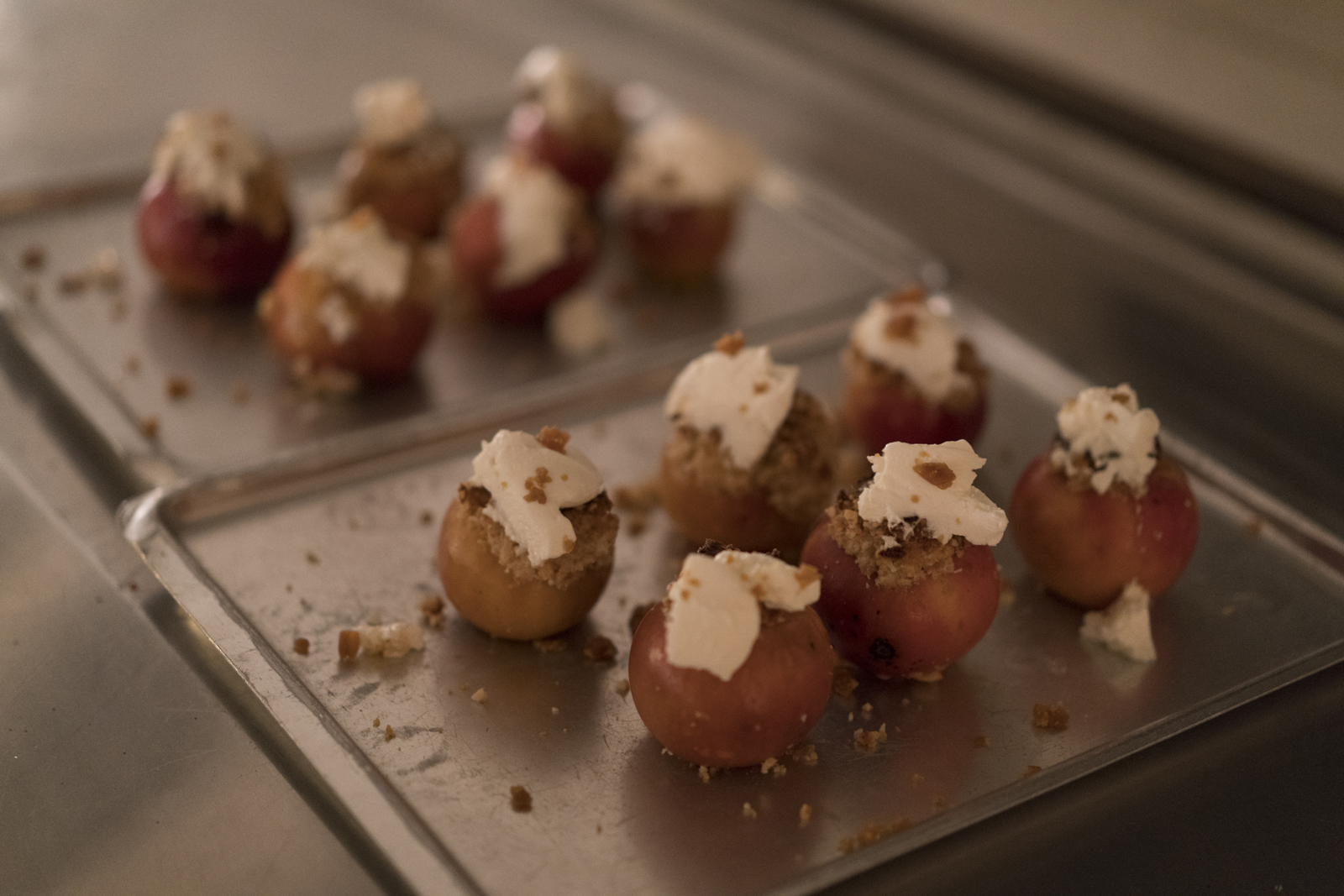 The dessert was called Høl i hue (literally “hole in the head”, but colloquially meaning silly, out of line) and was based on baked apples, nuts, whipped cream, and pork fat! A glorious end to a highly interesting dining experience.