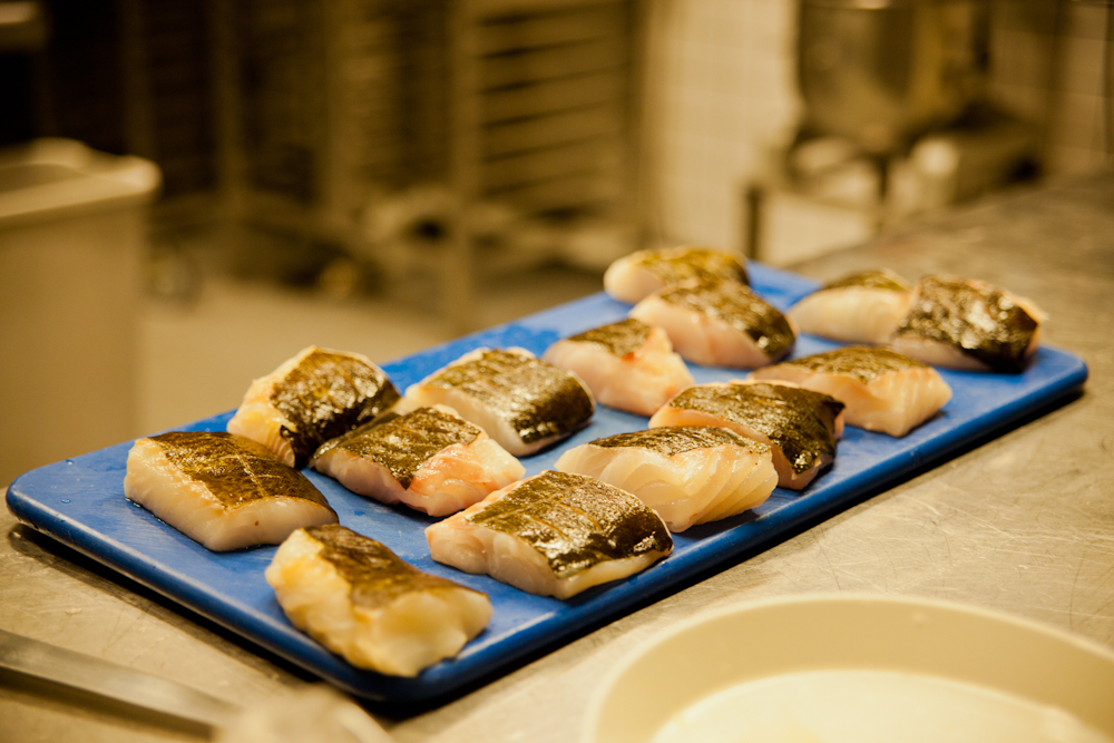 Buy the cod whole and filet it, or get the fish monger to do it for you. Scrape the skin of the fish with a knife to clean the skin.