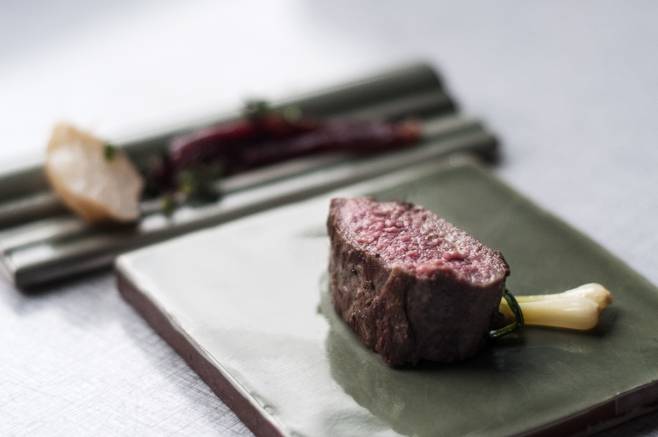 5. Saddle of Roe Deer with Cured Goose and Pickled Jerusalem Artichokes