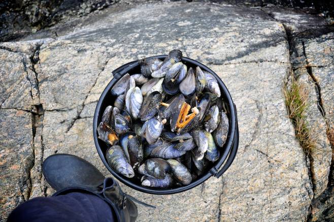 • One third of the cooked mussels