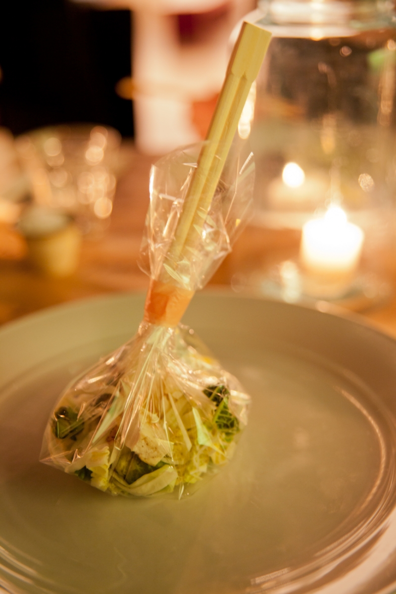 Asian surprise salad of seasonal greens, tangerines, szehuan peppers and tofu
